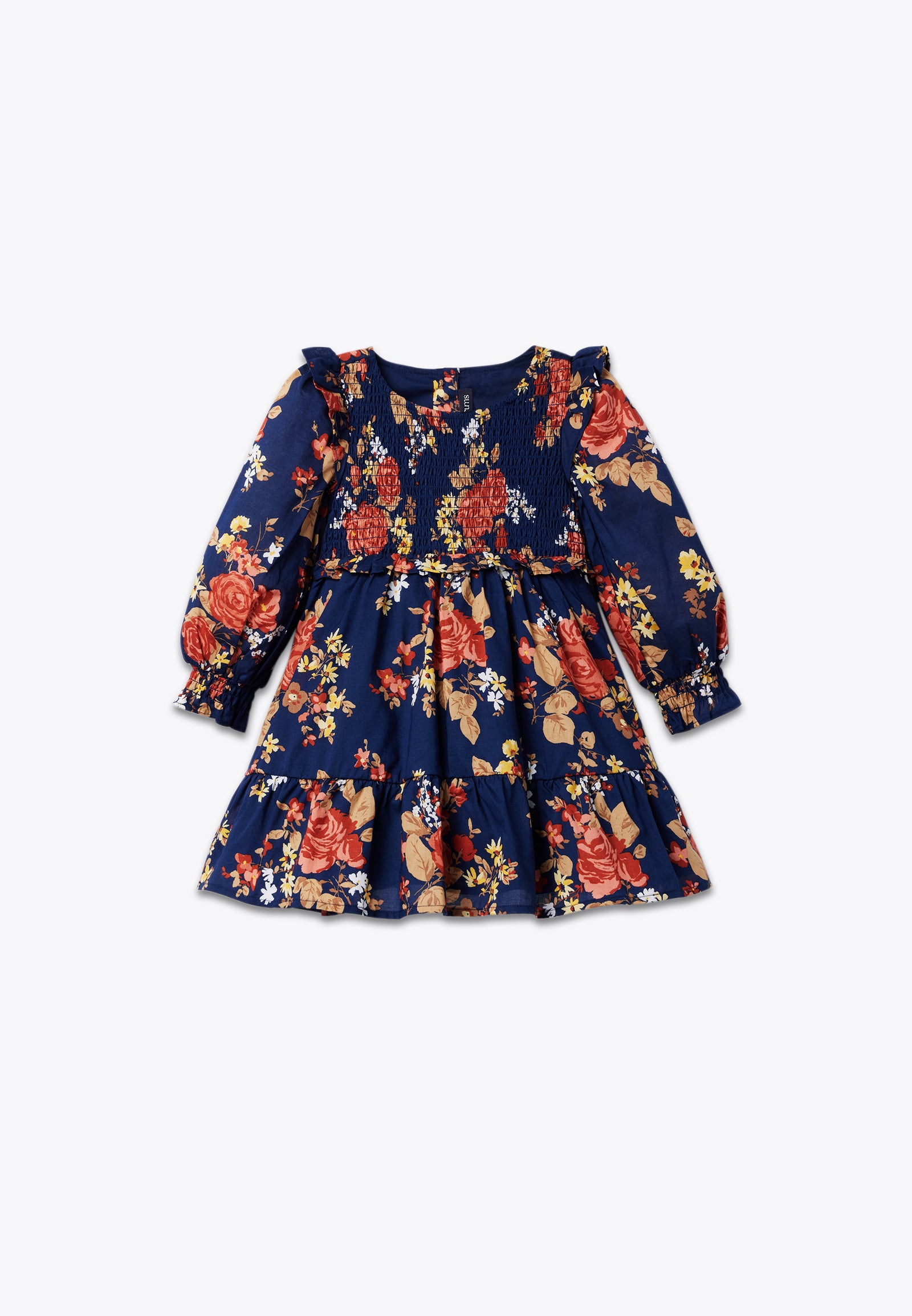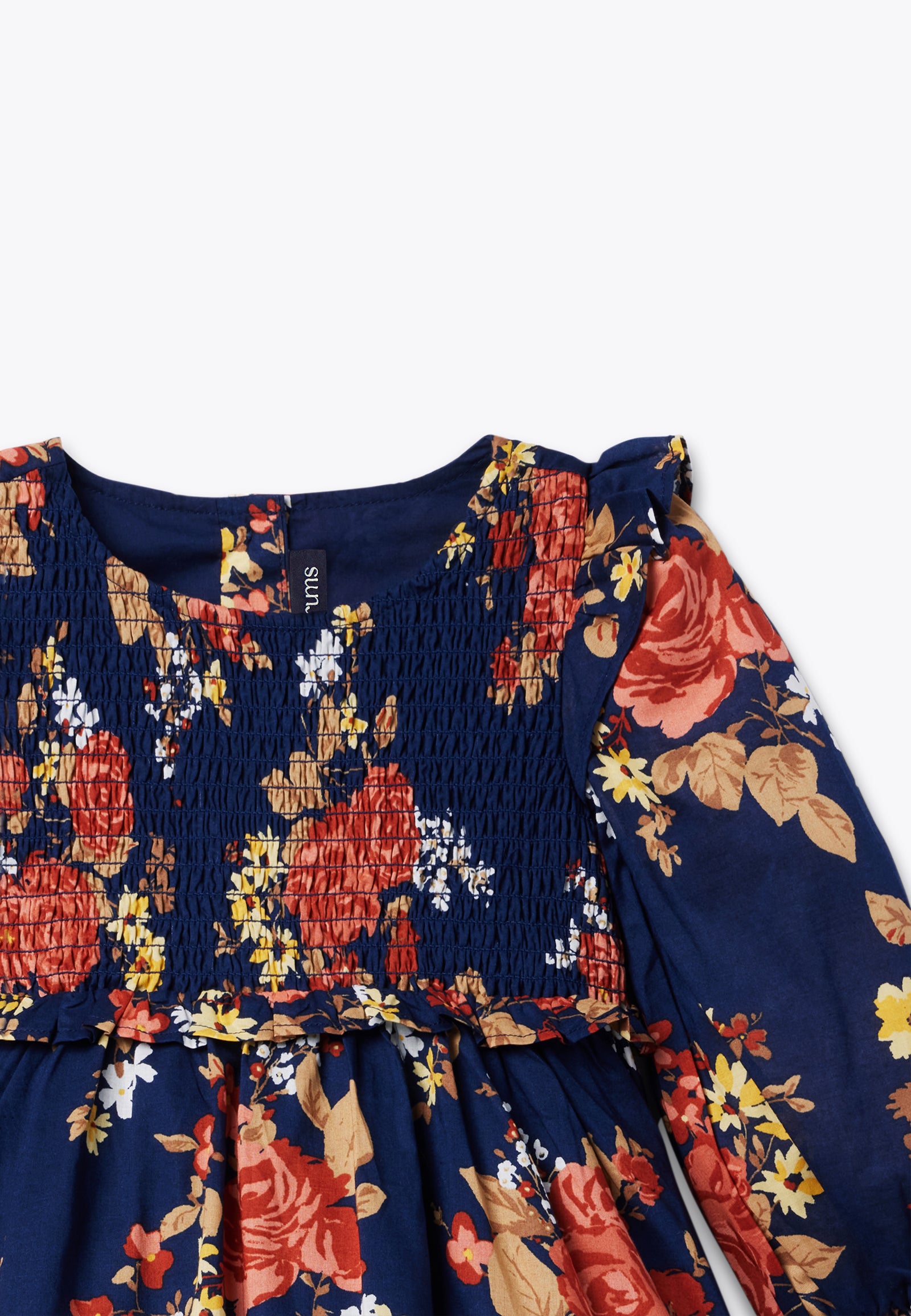 Abito fantasia con stampa. Un abito a cui non poter rinunciare: in morbido cotone elasticizzato, questo vestito ha uno stile semplice che permette di indossarlo nel quotidiano, ma anche dettagli unici come le rouches sulle spalle, le maniche a sbuffo e una simpatica balzina sul finale. Disponibile blu notte con motivo floreale rosso e in beige con motivo floreale giallo.