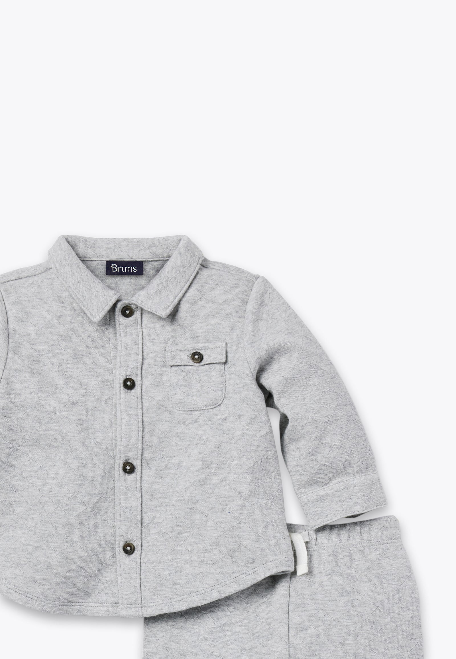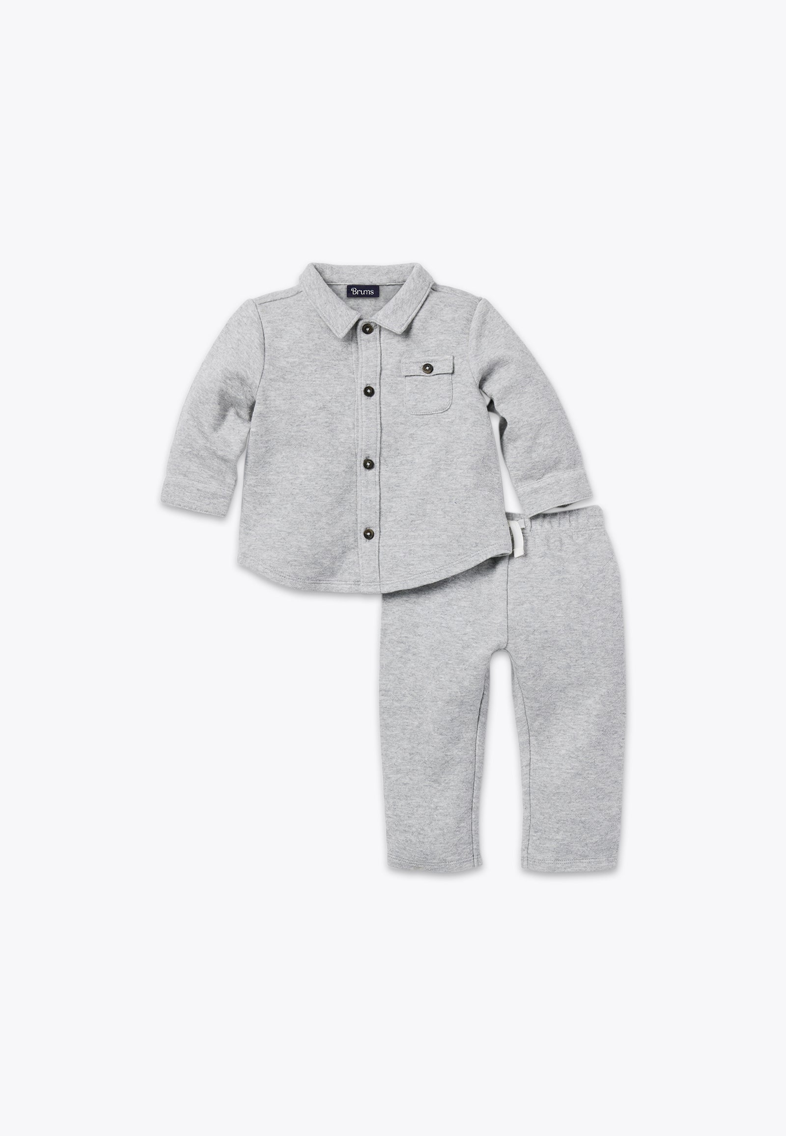 Completo due pezzi formato da camicia e pantalone lunghi. Un set composto da capi comodi e dallo stile unico: in morbida maglia e dal colore classico, è perfetto per comporre un outfit completo, così come spezzato. Disponibile in grigio.