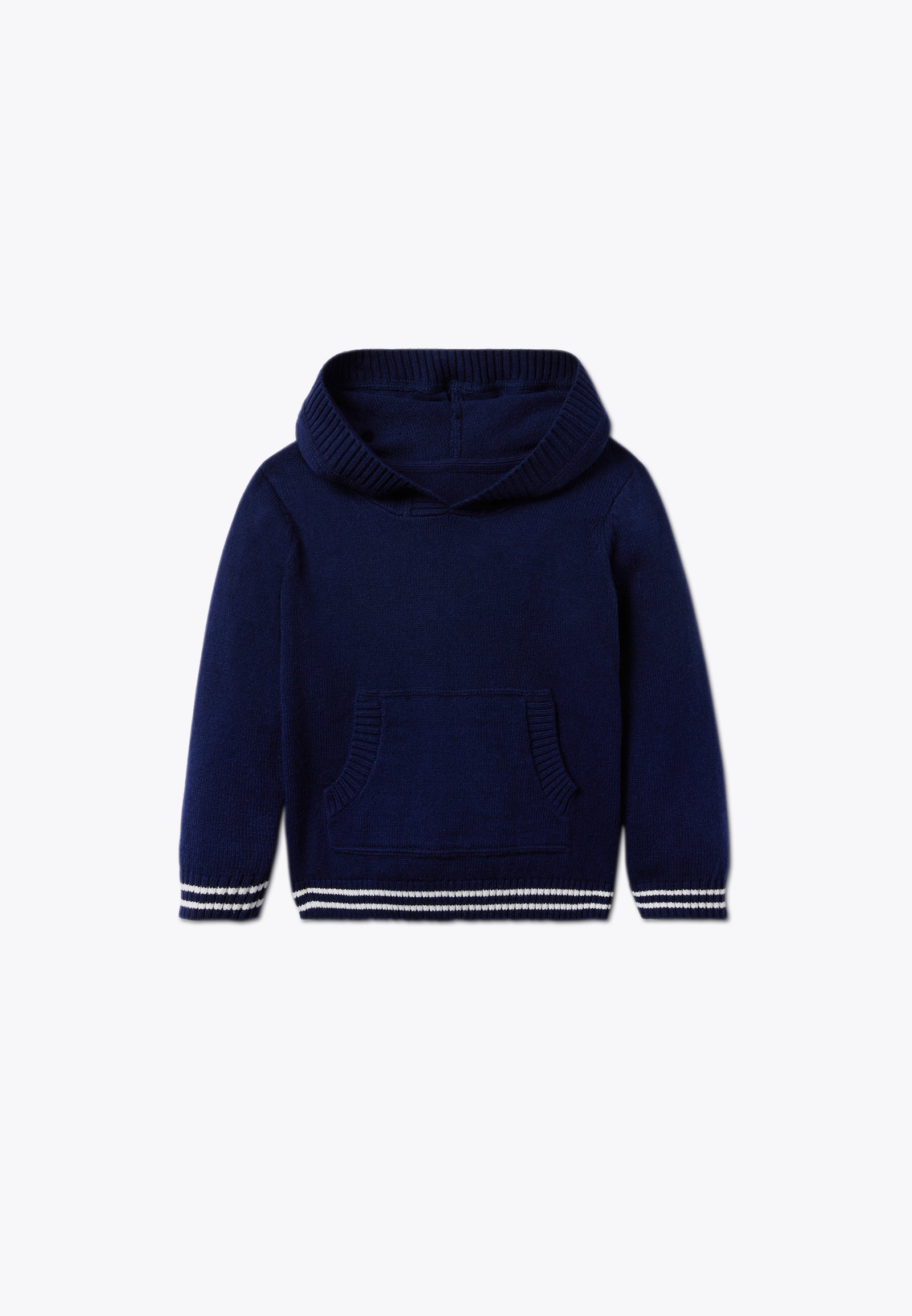 Maglia con cappuccio. Un top con cappuccio comodo e versatile, ideale per vestire il tuo bambino con un look classico. Dalle bellissima tonalità e dalla morbidezza unica, è il capo d'abbigliamento per completare un outfit casual, così come più elegante: fallo indossare al tuo piccolo in ogni occasione, dalla scuola alla passeggiata in centro città. Disponibile in blu notte con dettaglio bianco.