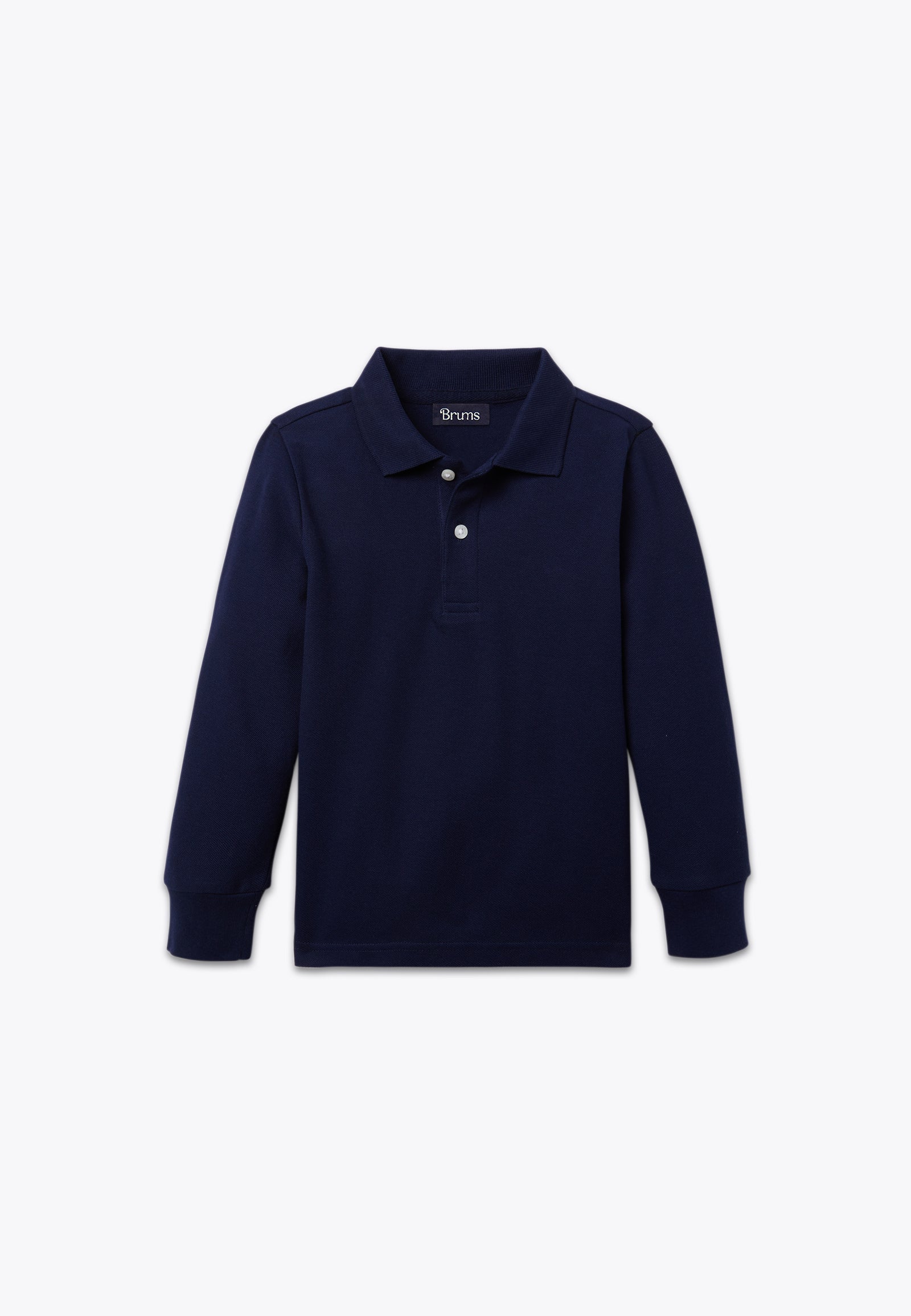 Polo in piquet a manica lunga. Una polo da indossare in ogni occasione. Realizzata in piquet di puro cotone, questo capo a maniche lunghe aggiunge un tocco di eleganza a qualsiasi look. Perfetta per la scuola o da abbinare a un outfit da tutti i giorni, non potrà di certo mancare nel guardaroba del tuo bambino. Disponibile in bianco, azzurro, bordeaux e blu notte.