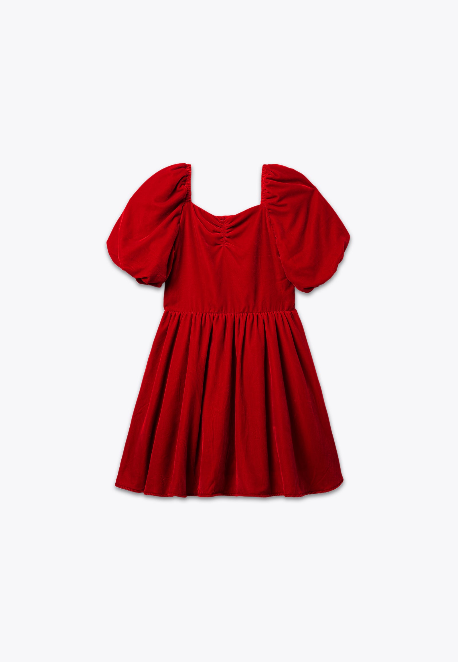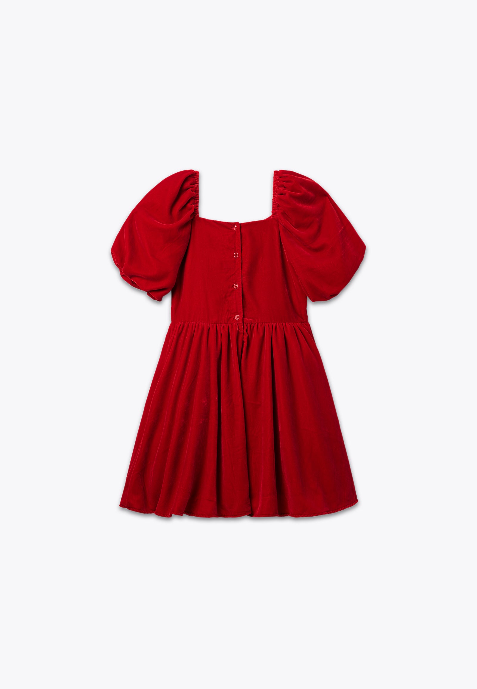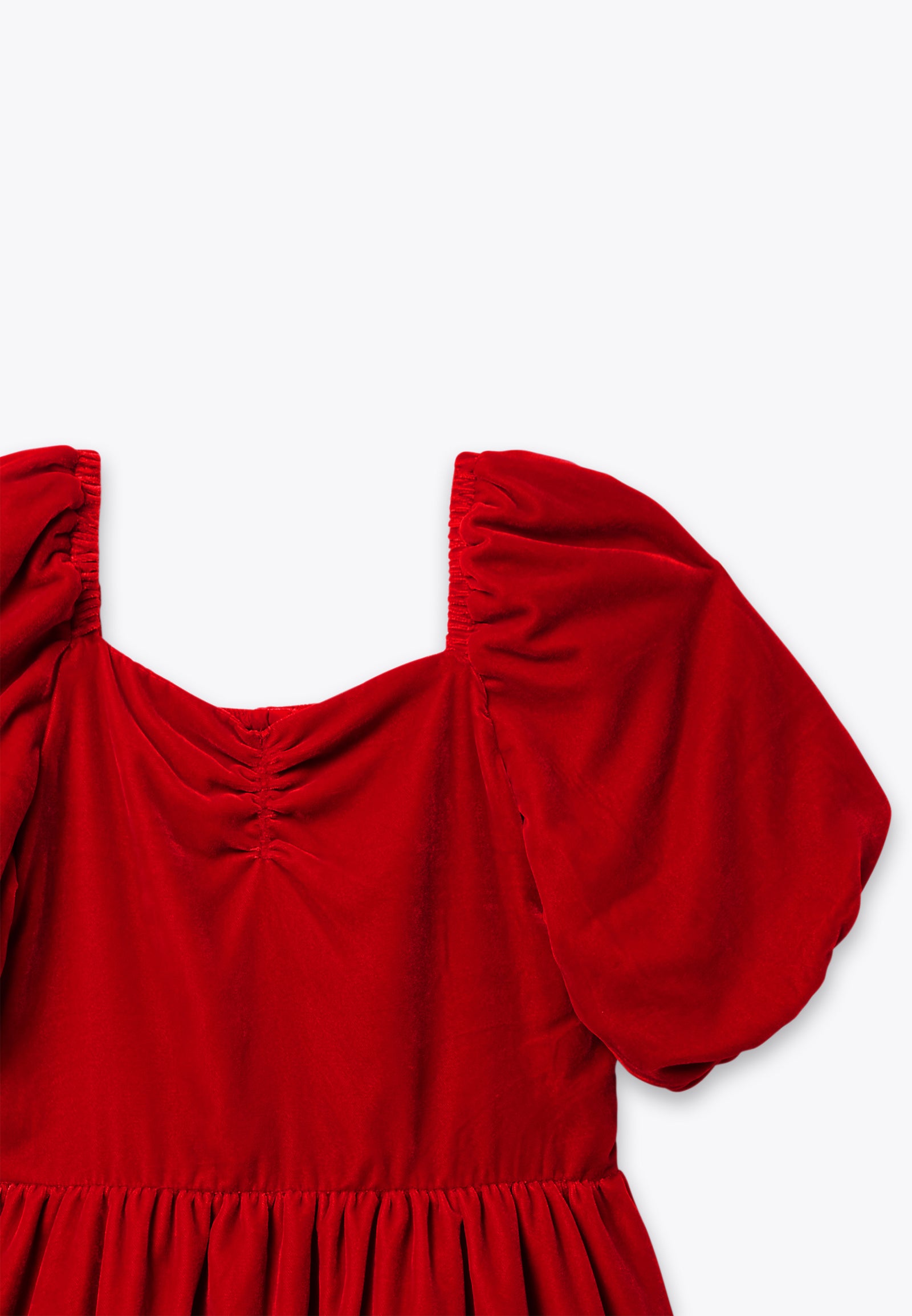 Abito effetto velluto. Un vestito perfetto per essere indossato durante gli eventi importanti delle vacanze natalizie, così come per una cerimonia o un'occasione speciale. Il morbido velluto dell'abitino e il dettaglio delle maniche a sbuffo doneranno alla tua bambina un tocco di classe unico. Disponibile in blu notte e in rosso.