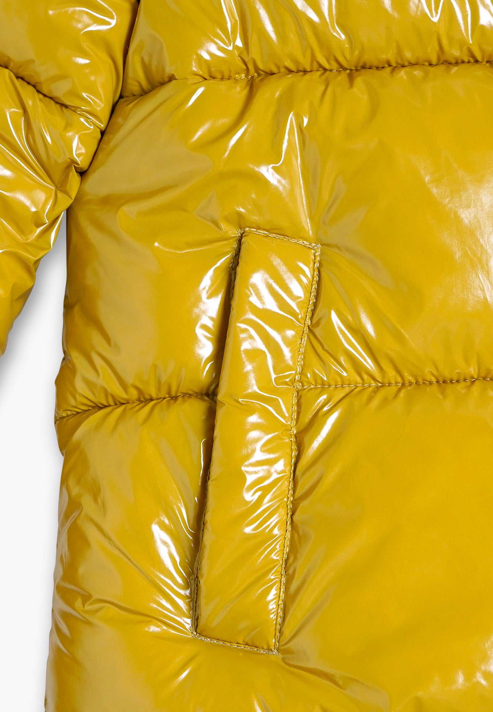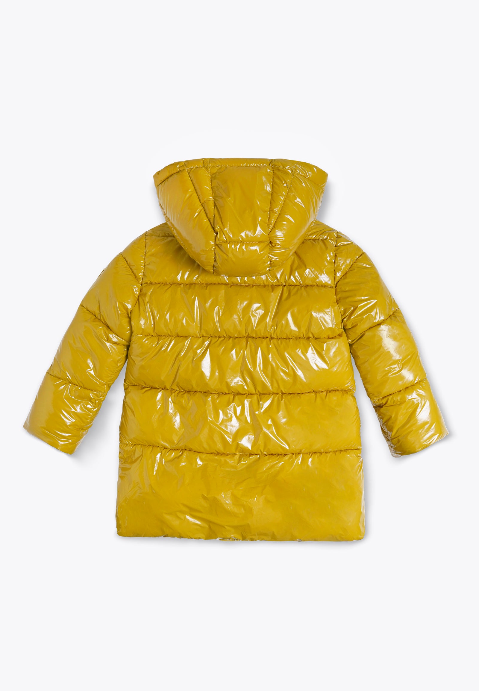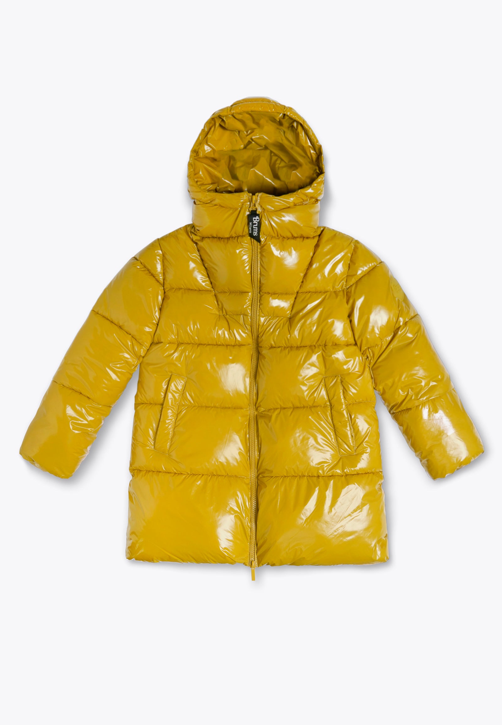 Caban lungo imbottito effetto lucido. Il giubbotto Brums Milano è il capo di tendenza perfetto per la tua bambina: presenta un taglio versatile, offrendo una vestibilità elegante; il cappuccio protegge dal freddo della stagione autunno-inverno e l'effetto del tessuto lucido dona al piumino un tocco di stile unico. Disponibile in azzurro e senape.