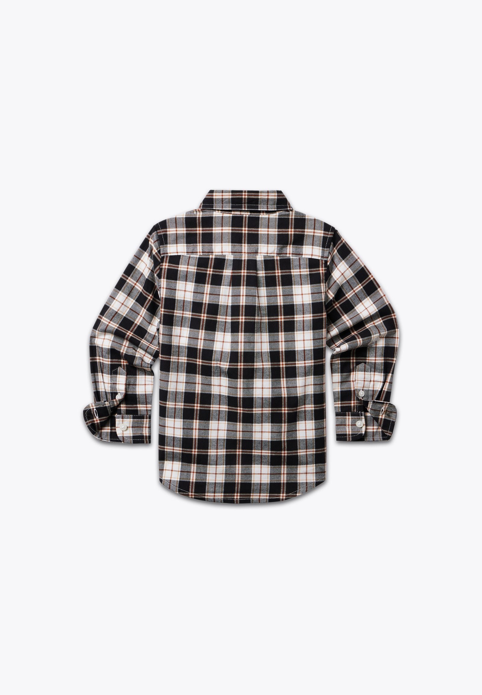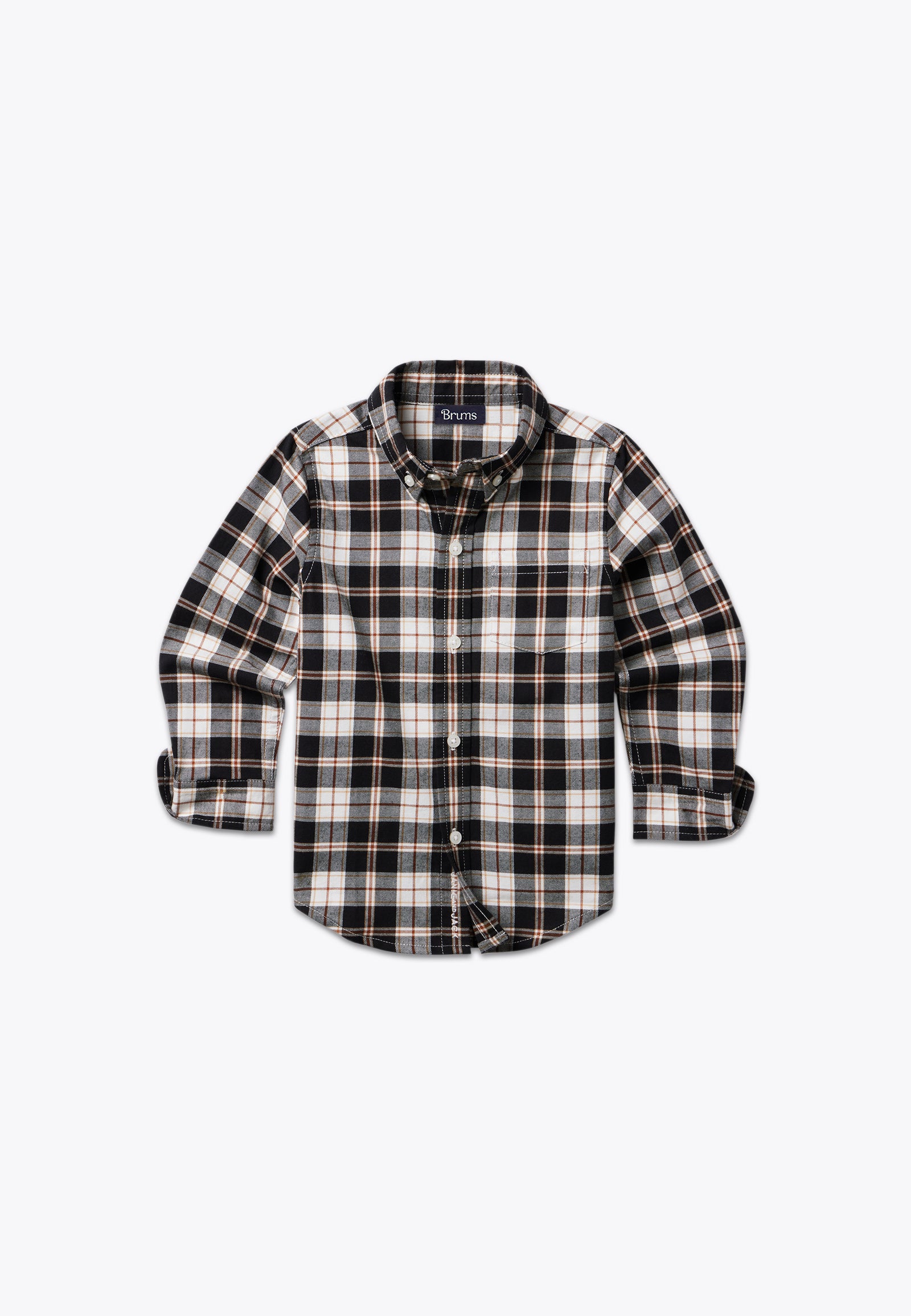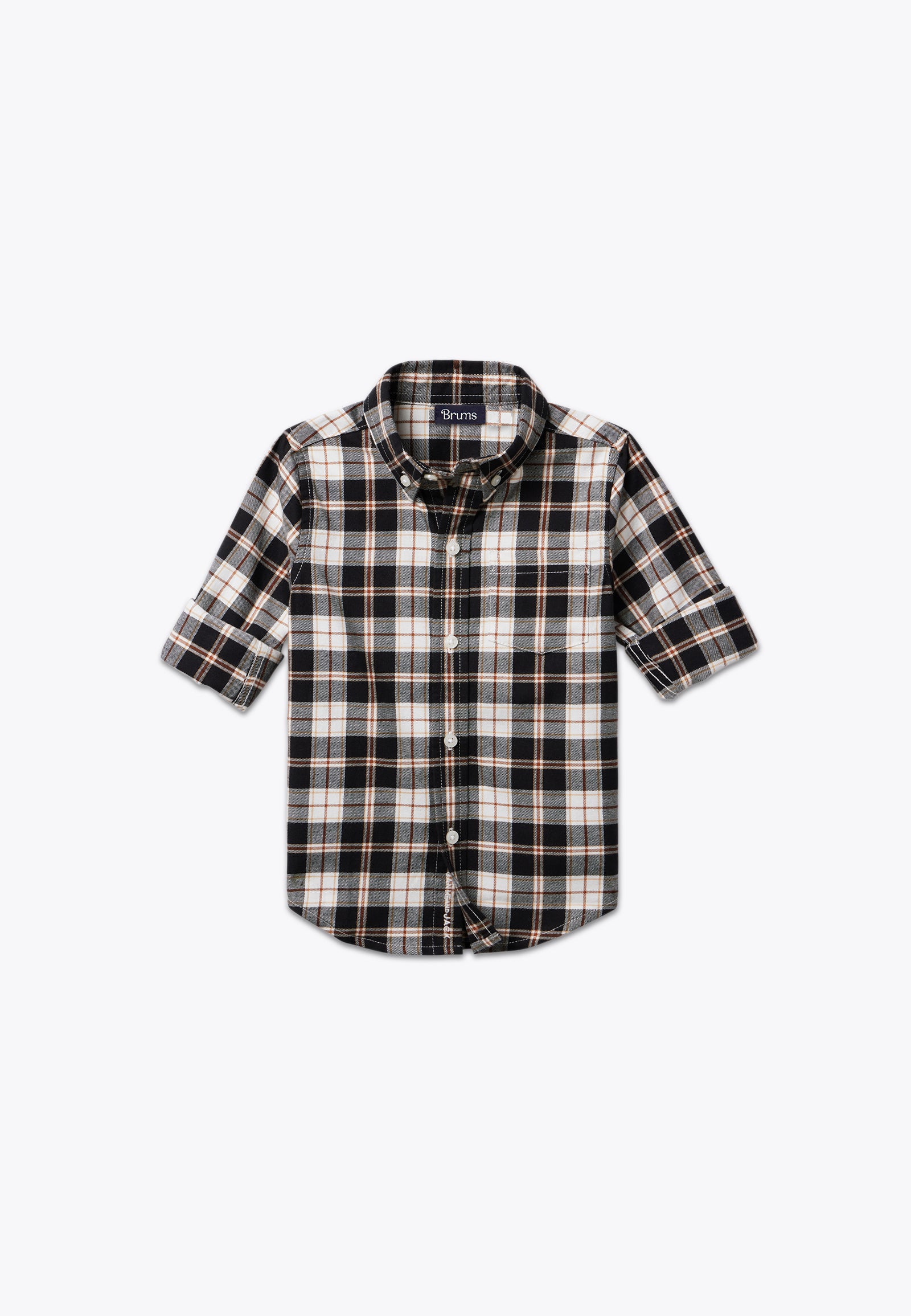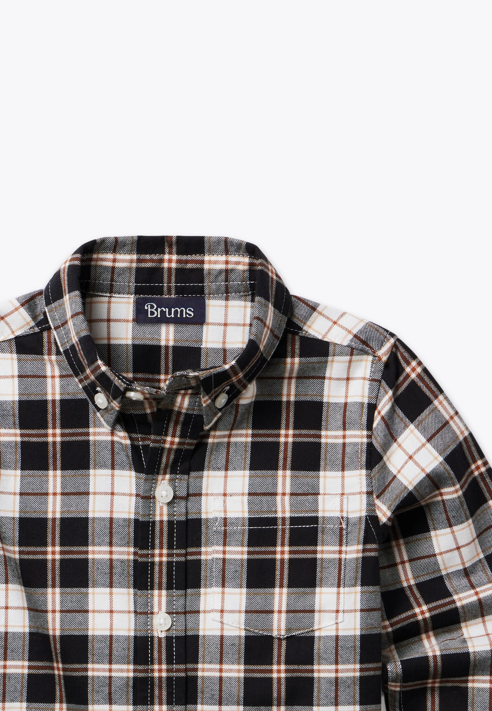 Camicia garzata in twill. Una versione extra morbida della classica camicia a quadri dal tessuto in puro cotone spazzolato che dona morbidità, perfetta da indossare con un jeans o un pantalone elegante. Disponibile in bianco con motivo a quadri nero e marrone.
