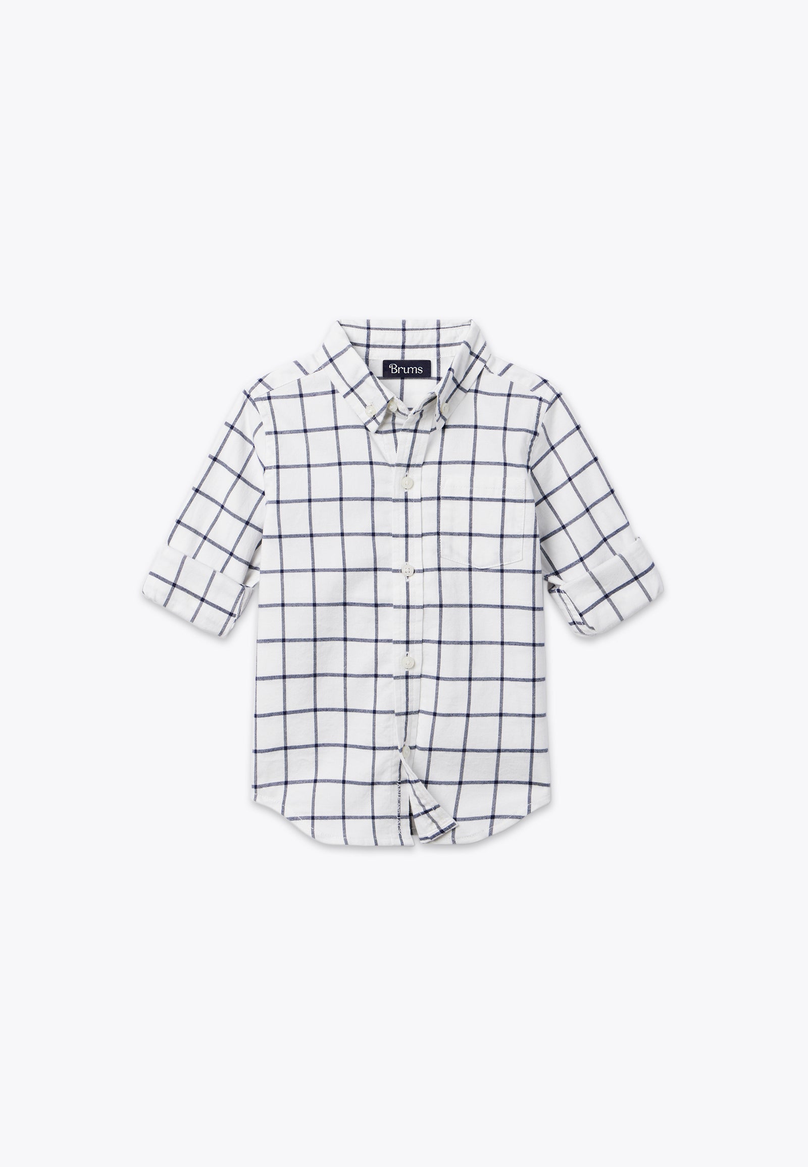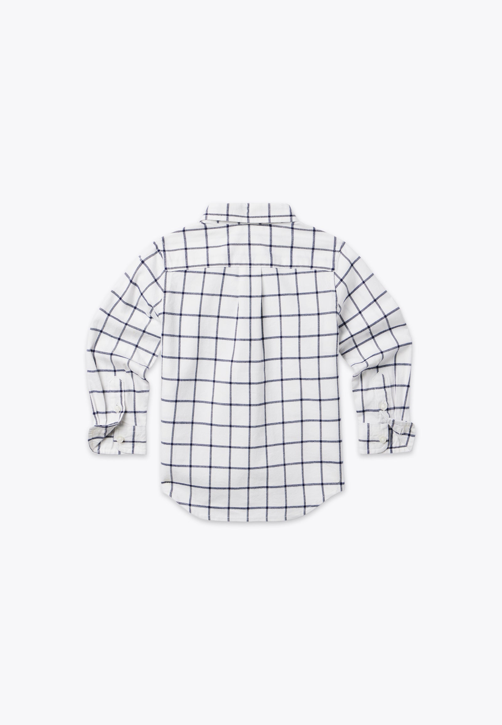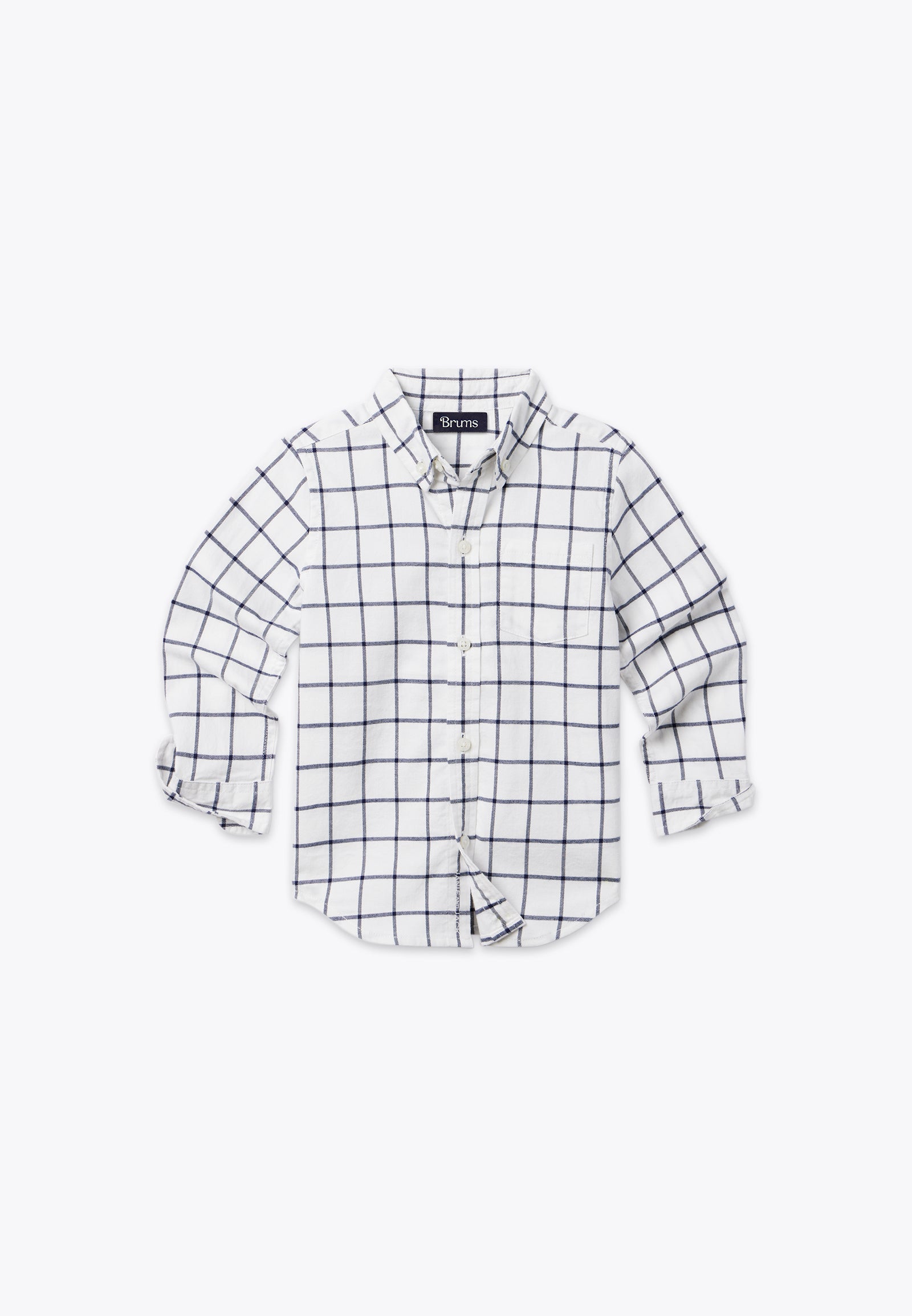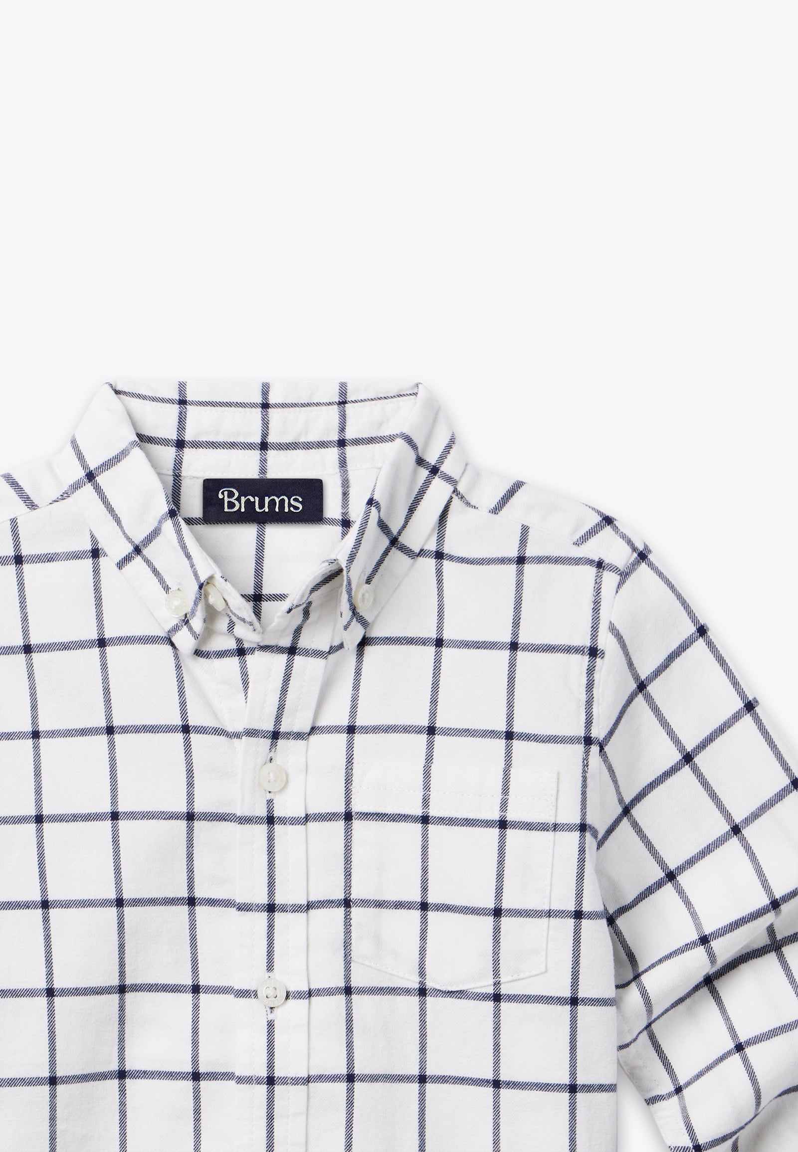 Camicia garzata in twill. Una versione extra morbida della classica camicia a quadri dal tessuto in puro cotone spazzolato che dona morbidità, perfetta da indossare con un jeans o un pantalone elegante. Disponibile in blu notte con motivo tattersall a quadri bianco e in bianco con motivo tattersall a quadri blu notte.