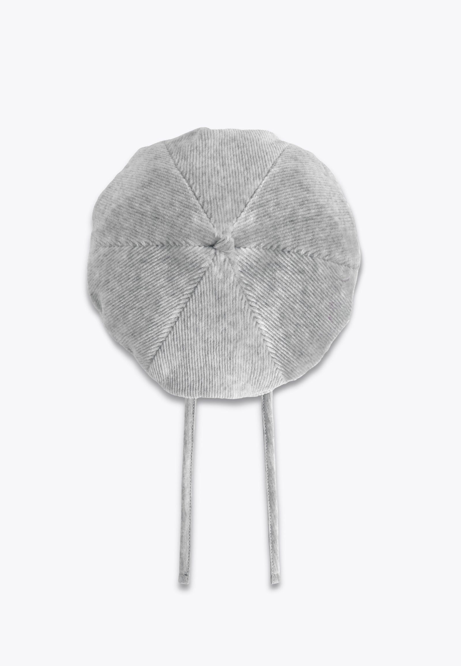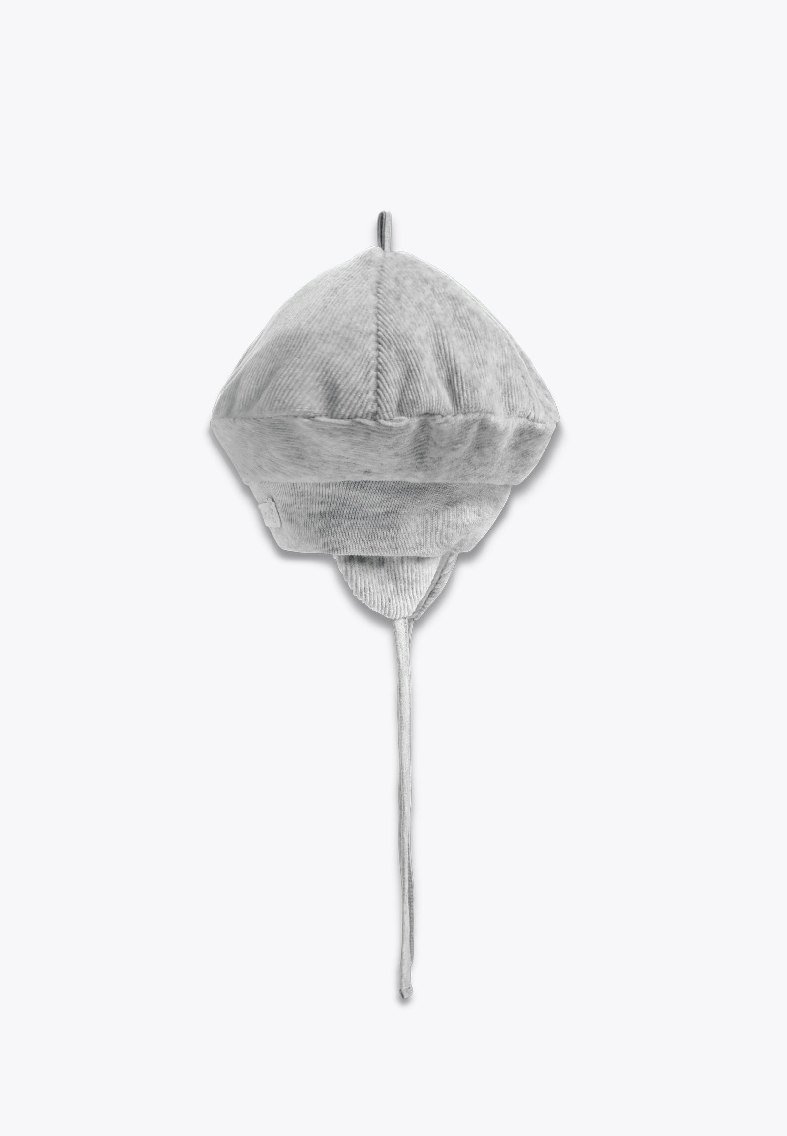 Cappellino in ciniglia a coste. Un accessorio dall'aspetto artigianale - perfetto come idea regalo - ideale per completare il look della tua piccola. Realizzato con cura e attenzione ai dettagli, questo cappellino offre stile e comfort: la cuffia con laccio ti permette di regolare la misura e garantire una vestibilità perfetta per la tua bambina. Disponibile in rosa e grigio.