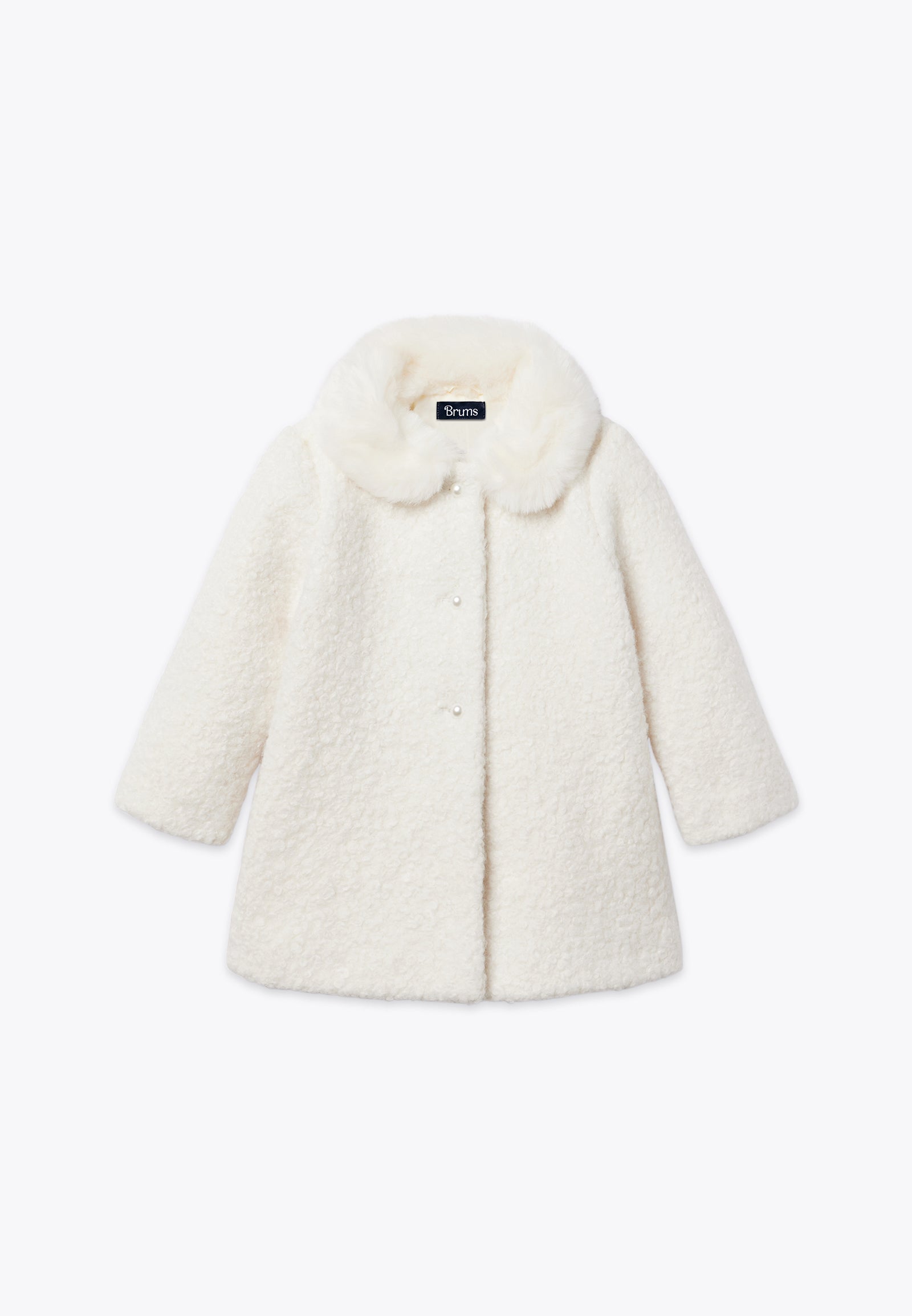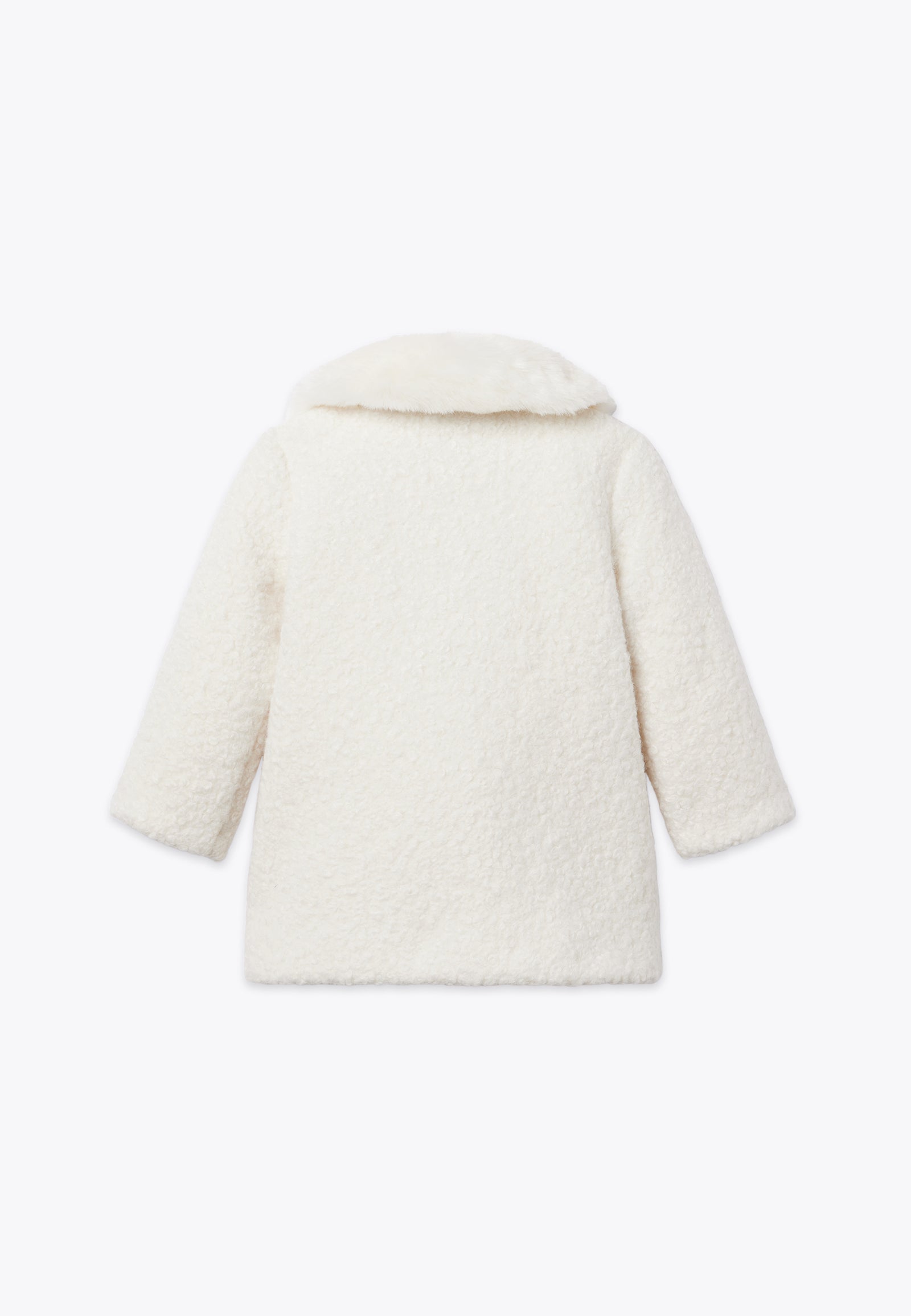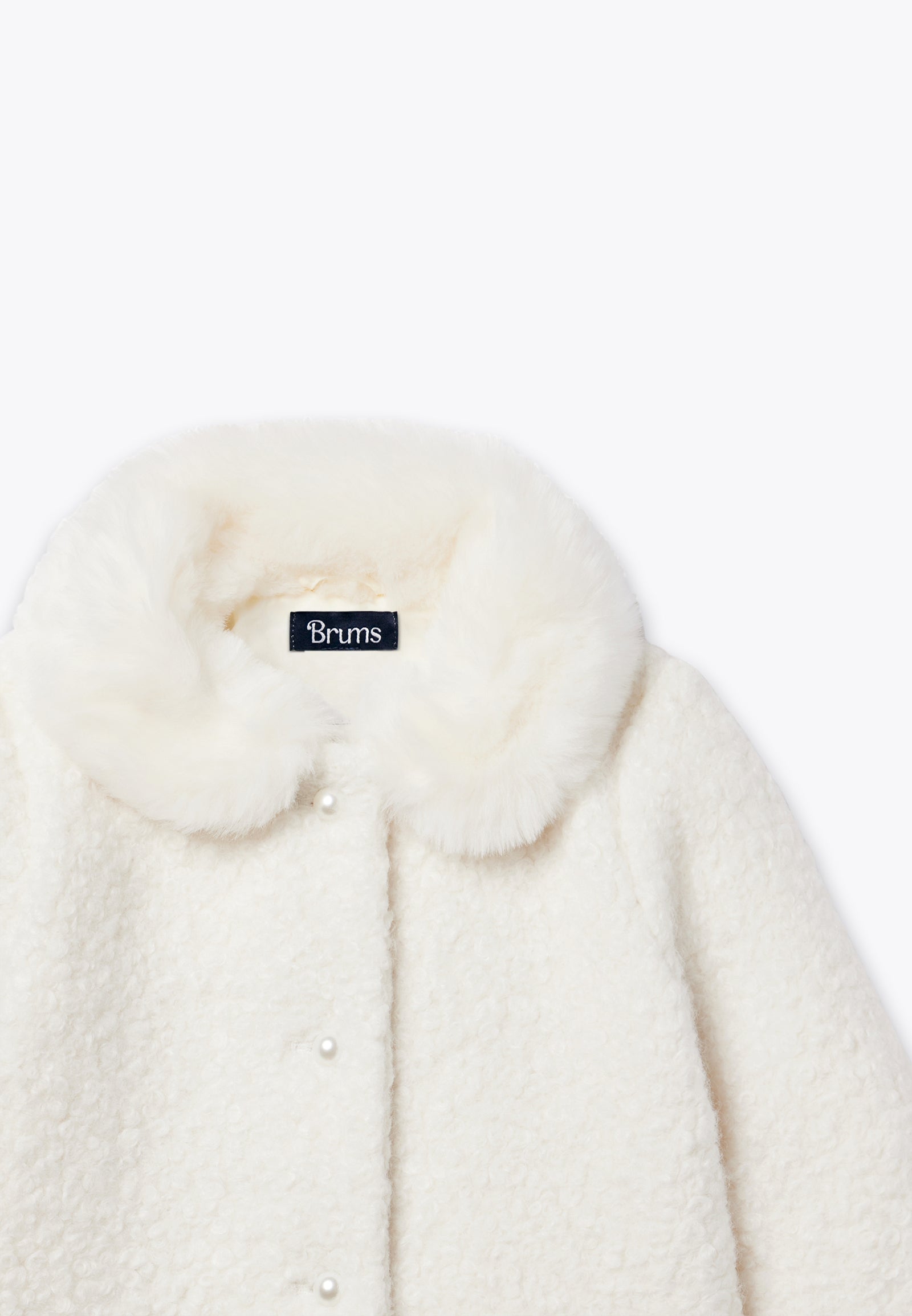 Cappotto lungo di pelliccia sintentica. Un capospalla unico per accompagnare la tua bambina durante le occasioni importanti, come cerimonie ed eventi. Abbina questo cappottino peloso a un abito o a un qualsiasi outfit elegante grazie al colore classico e alla silhouette lineare che non passa mai di moda. Disponibile in bianco.