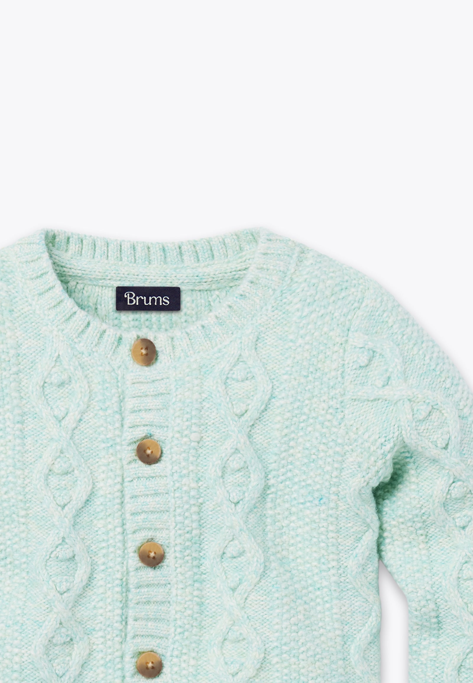 Cardigan con trama a trecce. Un capo d'abbigliamento da neonato delicato, comodo e perfetto da indossare con qualsiasi outfit: abbinalo a un jeans o un paio di pantaloni in maglia per creare look casual dalla morbidezza unica. Disponibile in verde acqua, in rosa e in azzurro carta da zucchero.