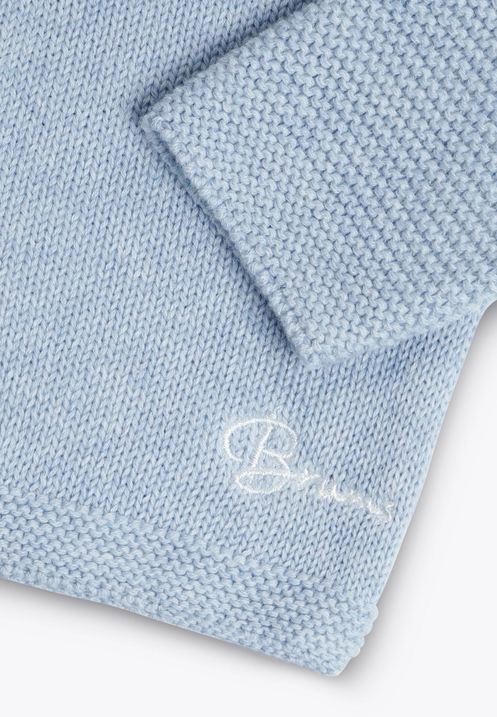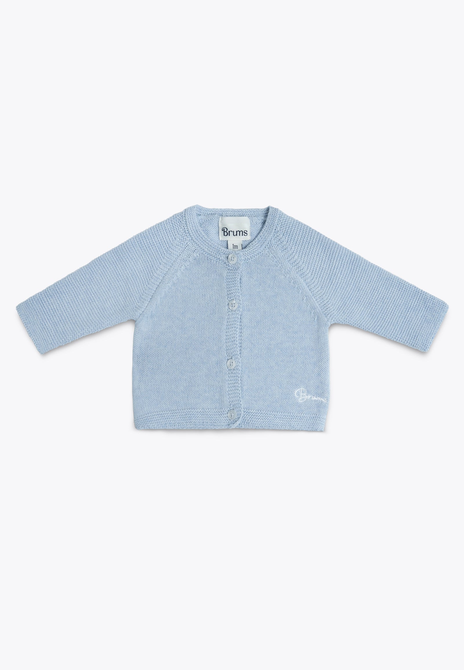 Cardigan in maglia. Una coreana in cotone puro Made in Portogallo che assicura comfort ottimale per la pelle del neonato e offre una sensazione morbida e piacevole al tatto: le maniche e il fondo capo in grana di riso creano un accattivante contrasto con la lavorazione liscia sul davanti e sul retro del cardigan per un tocco di eleganza e originalità. Disponibile in rosa e azzurro melange.