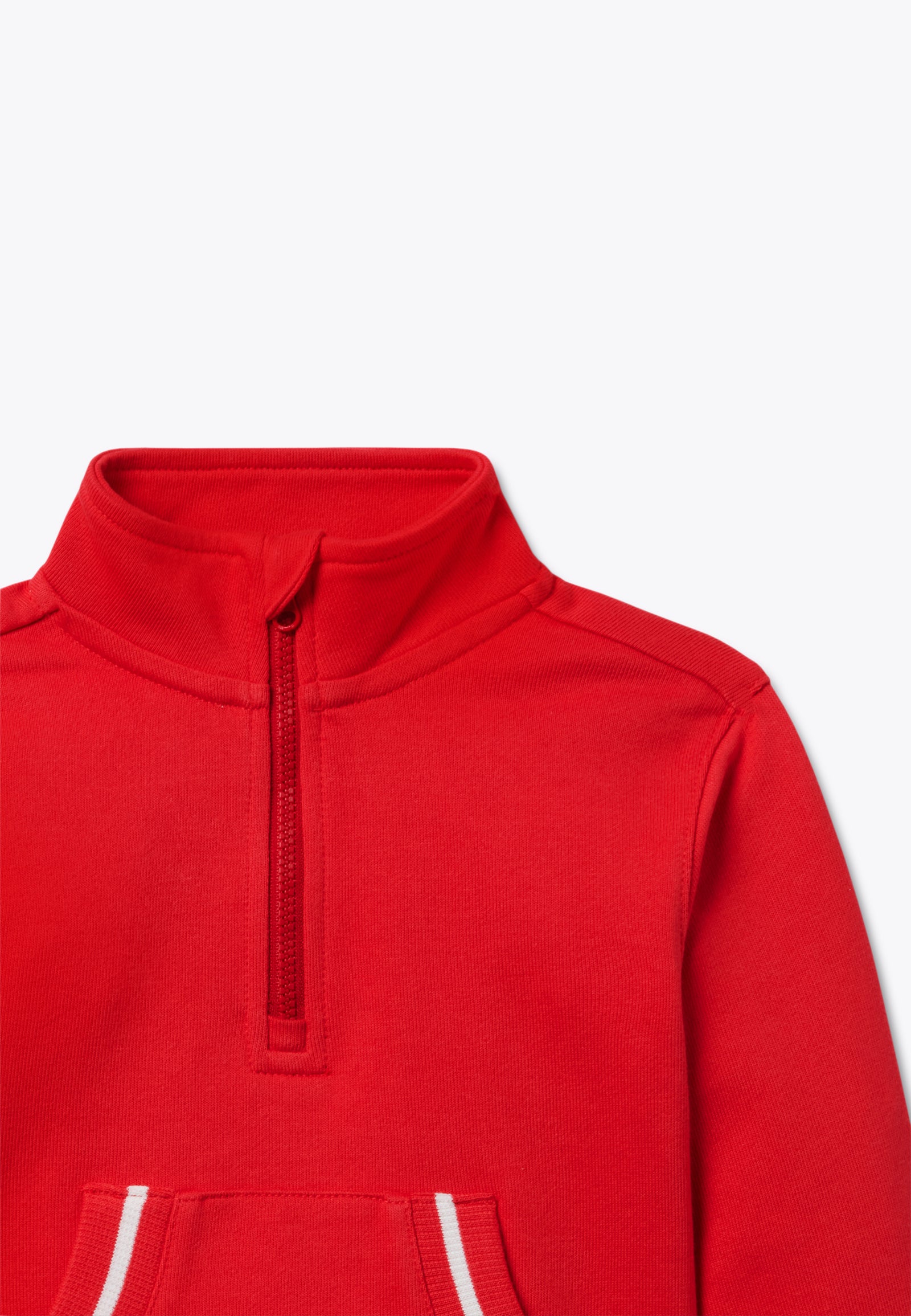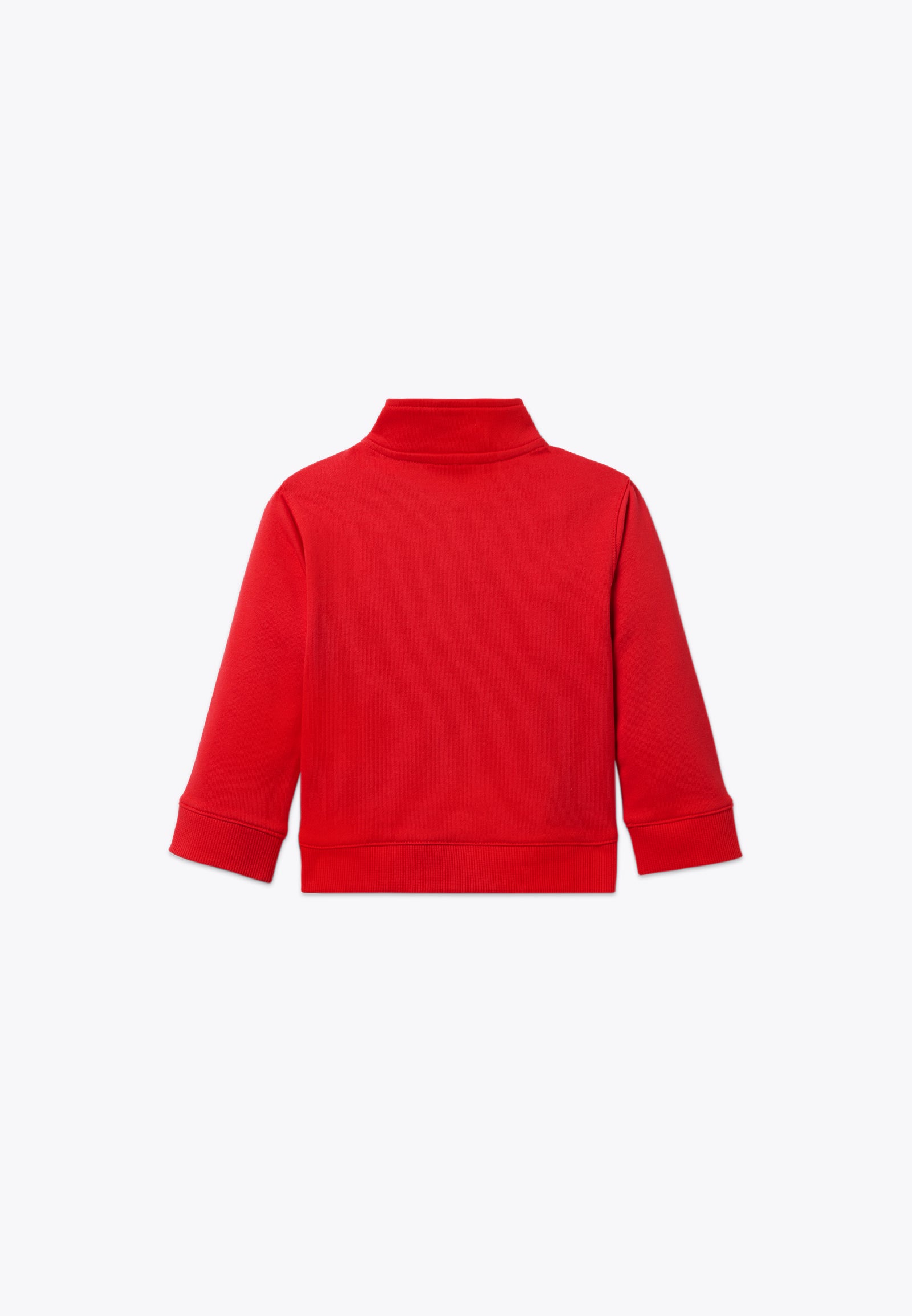 Felpa rossa con mezza zip. Un top con zip comodo e versatile, ideale per vestire il tuo bambino con un look urban e super colorato. Dalle bellissima tonalità calda e dalla morbidezza unica, è il capo d'abbigliamento per completare un outfit casual e sportivo. Disponibile in rosso.