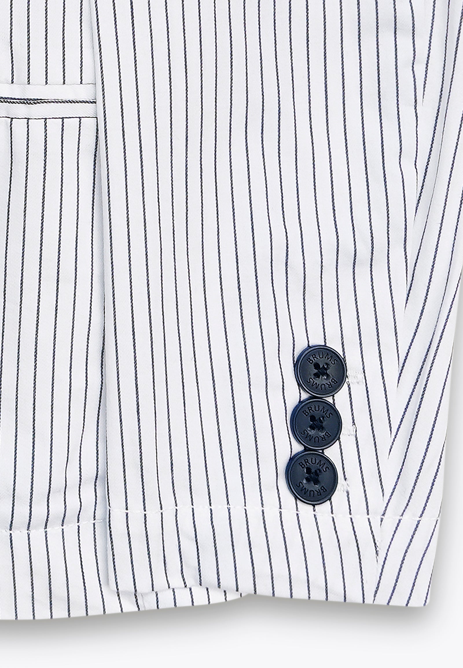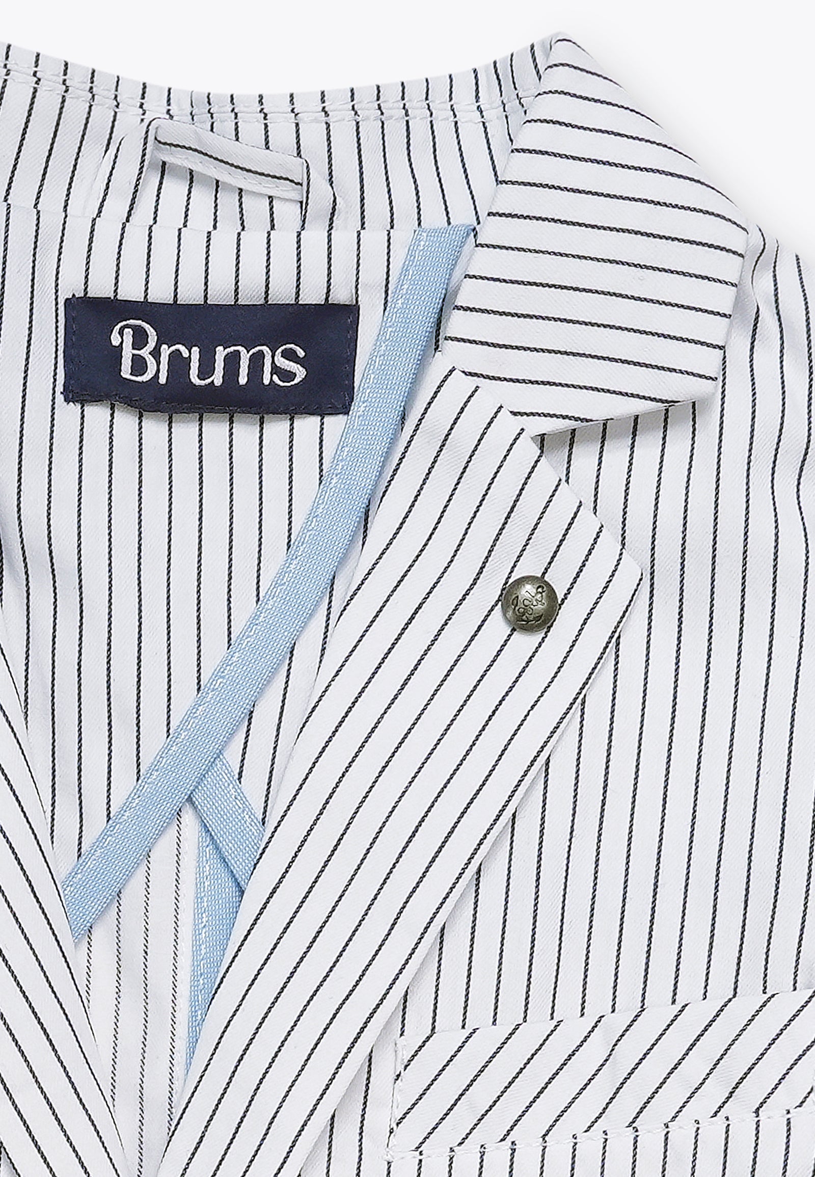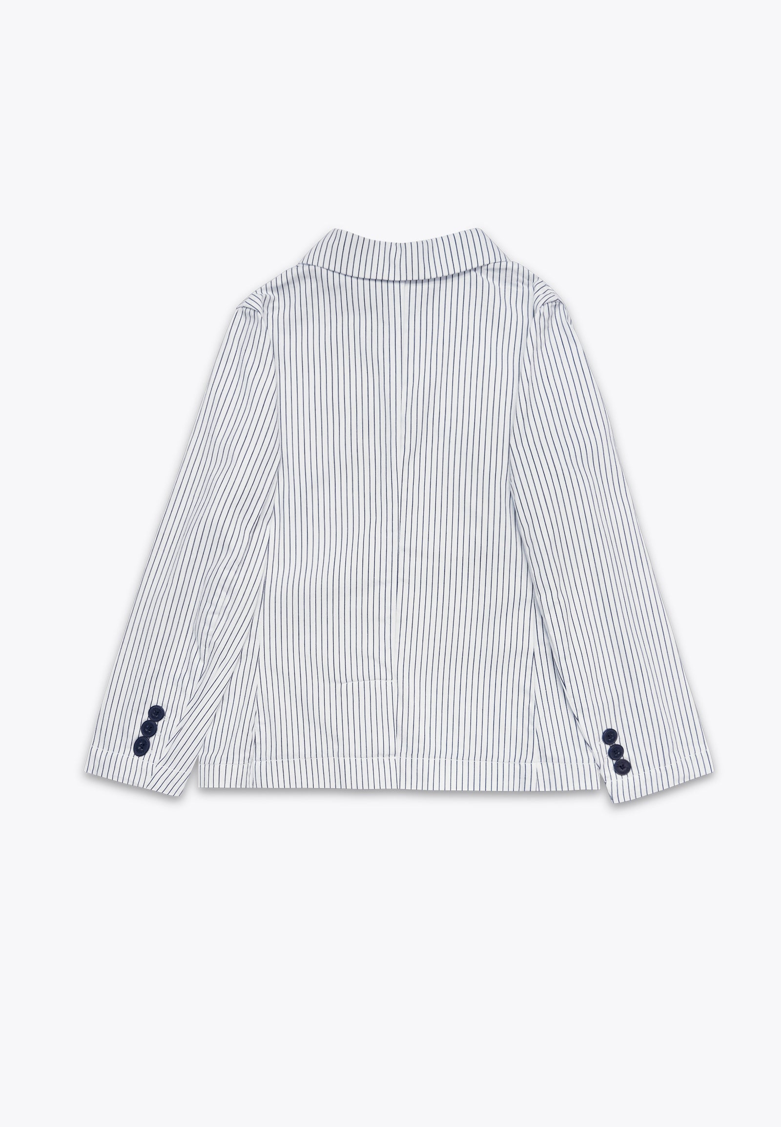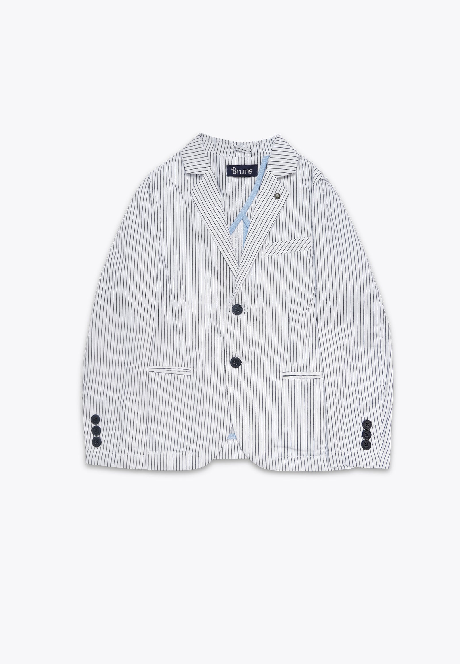 Giacca rigata tinto filo. Realizzata con attenzione ai dettagli, la giacca presenta un design unico che conferisce eleganza. Il tessuto morbido e delicato sulla pelle assicura il massimo comfort e il taglio moderno e le finiture di alta qualità la rendono adatta a ogni occasione, che sia la cena al ristorante o un grande evento come una cerimonia. Disponibile nella variante in bianco con righe blu.