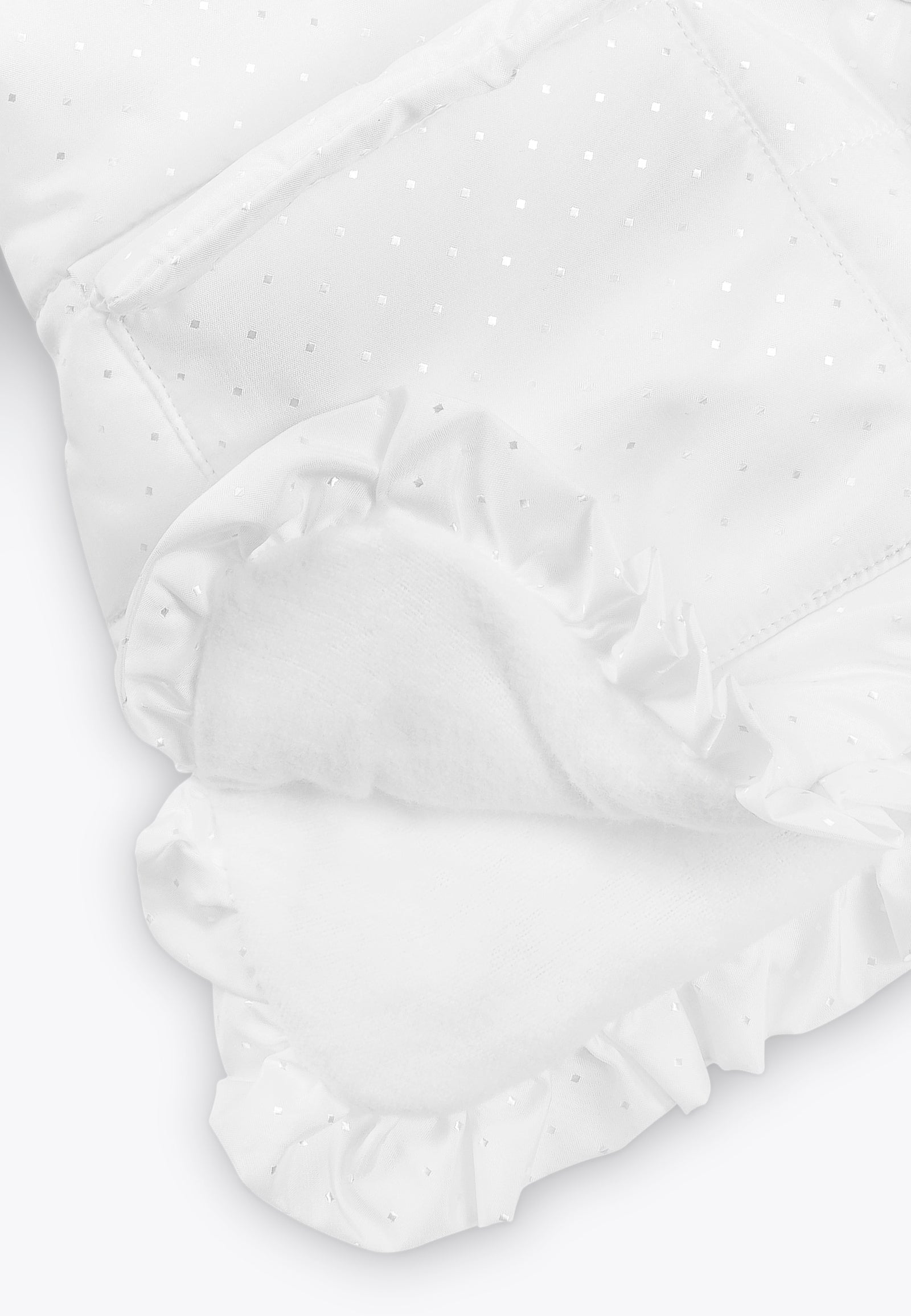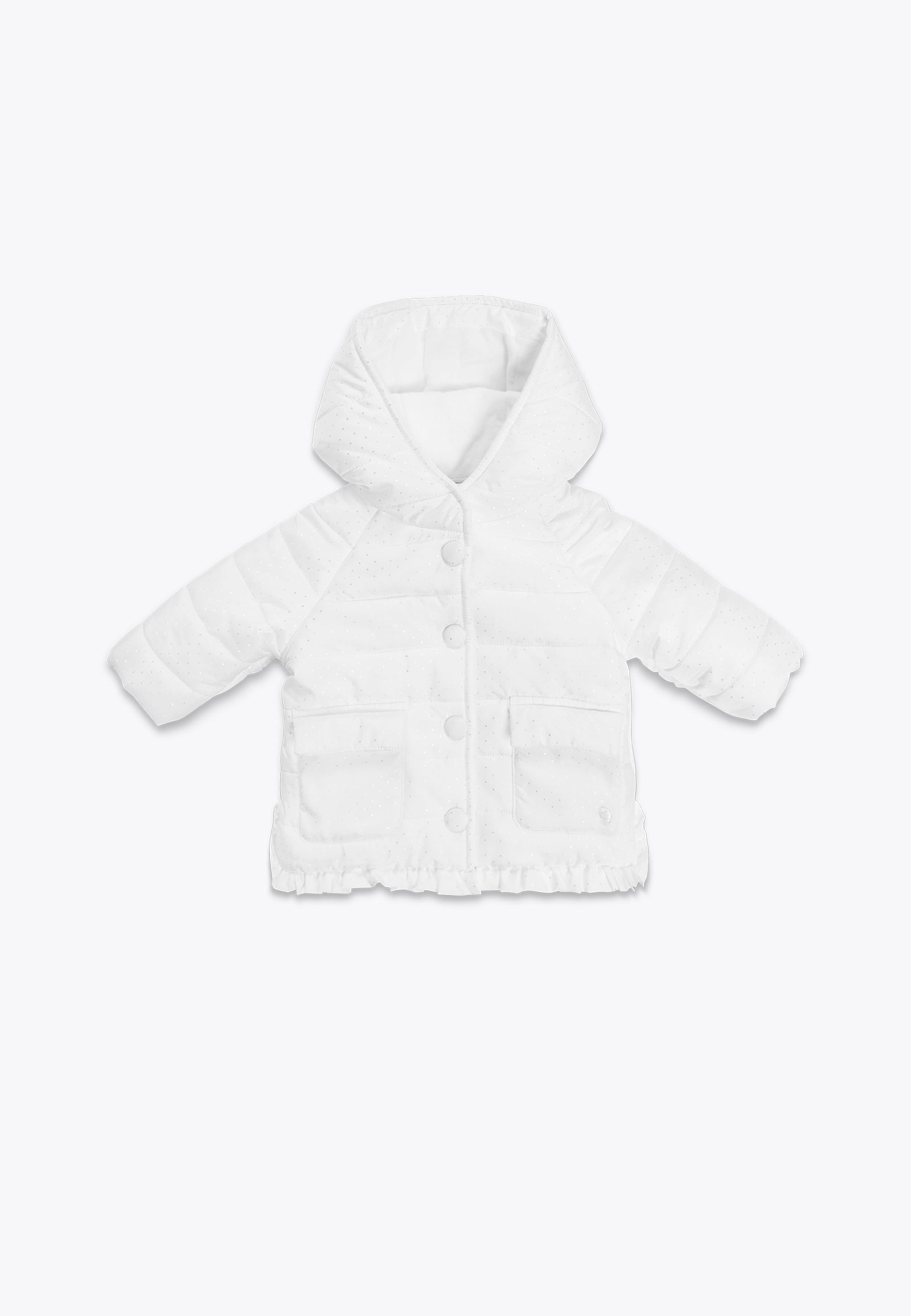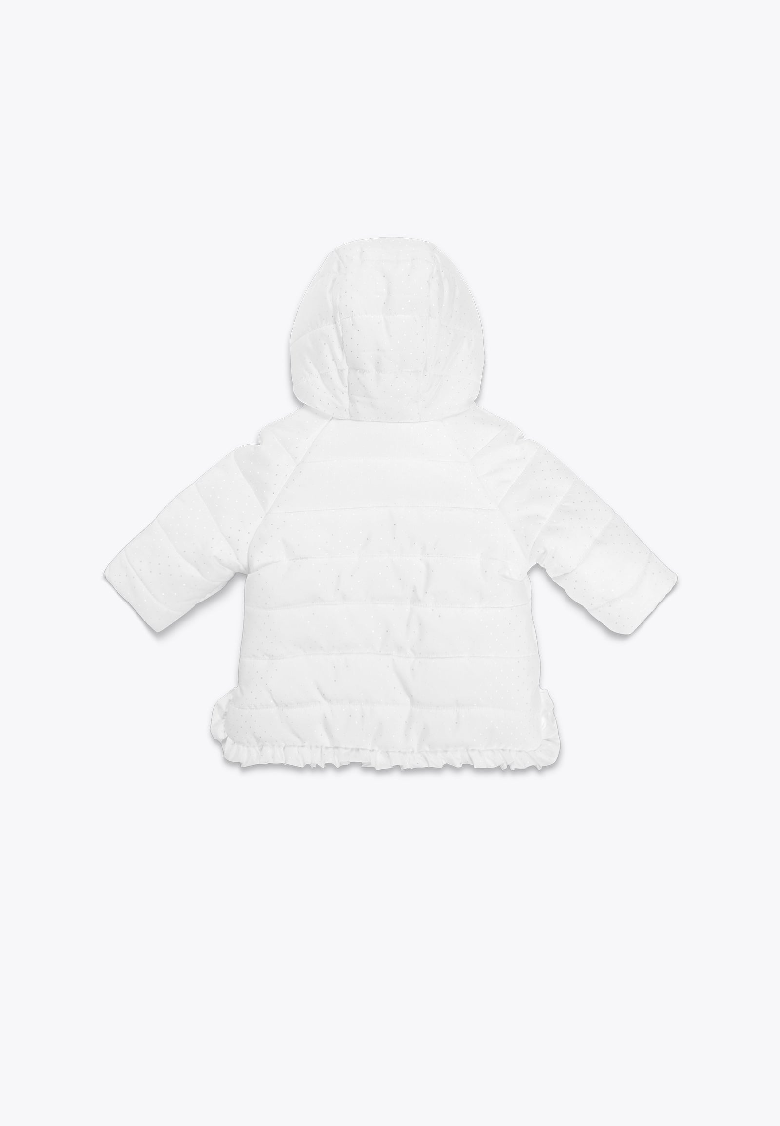 Giacca con imbottitura trapuntata e cappuccio. Un capospalla unico dal colore delicato e dai dettagli curati per accompagnare la tua bambina durante le fredde giornate della stagione autunno-inverno. Perfetta per un occasione speciale - un evento, una festa, una cerimonia - così come per un occasione meno formale, questa giacchina imbottita non potrà di certo mancare nell'armadio della tua bimba. Disponibile in bianco con stampa a rombi in argento metallizzato.