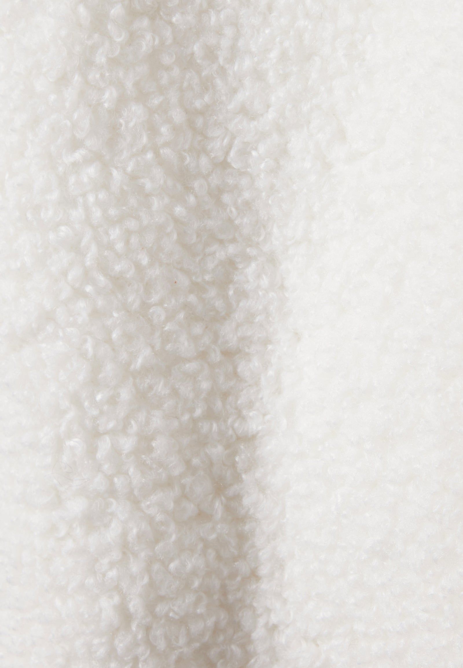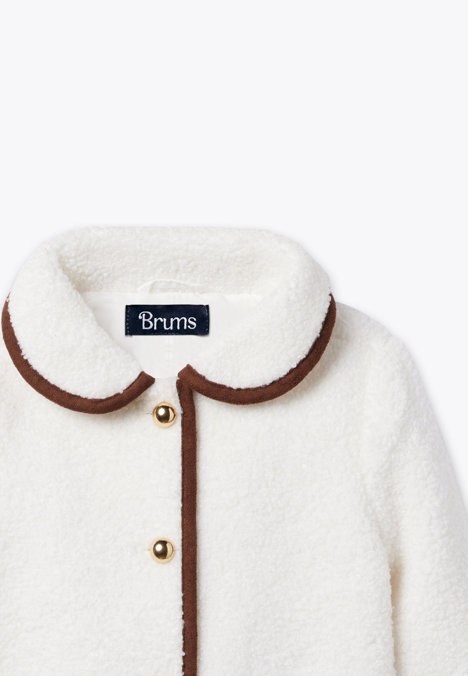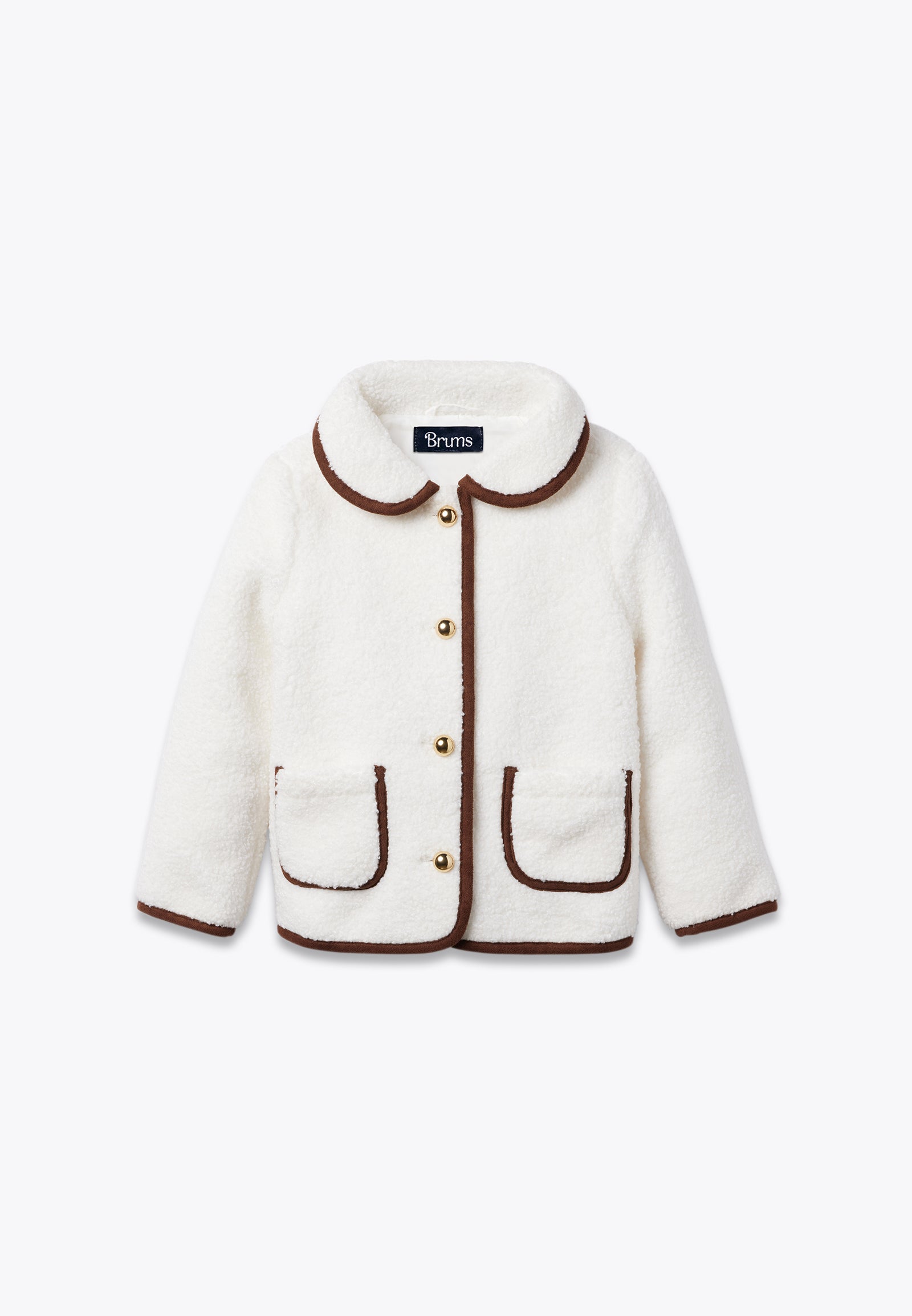 Giacca in pile. Morbida e dalla comodità unica, la giacca in pile sherpa presenta un colletto arrotondato e finiture in finta pelle scamosciata, oltre a bellissimi bottoni color oro e comode tasche frontali. Adatta per ogni tipo di look, soprattutto per un giro in centro città e quando è richiesta un'eleganza chic. Disponibile in bianco.