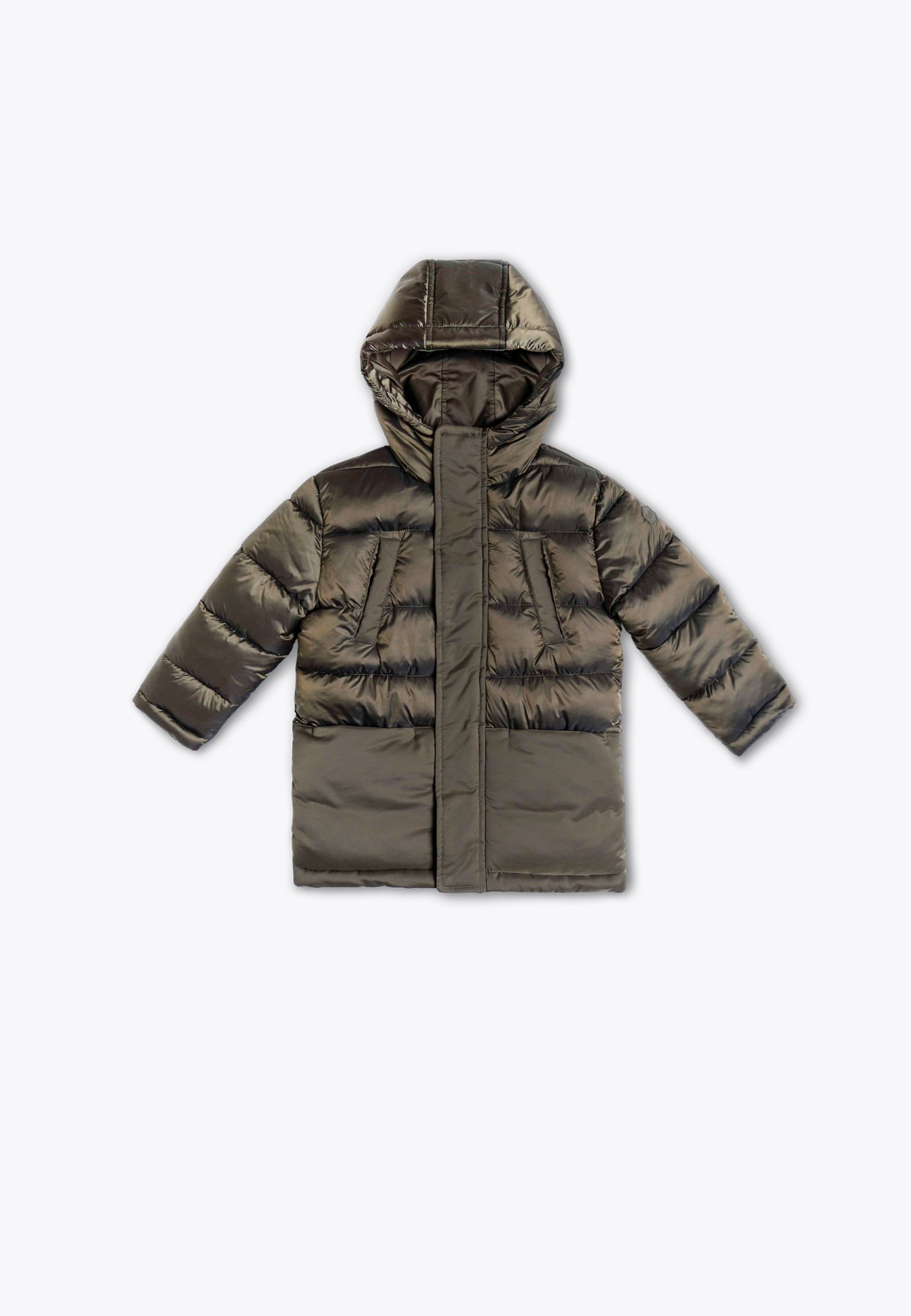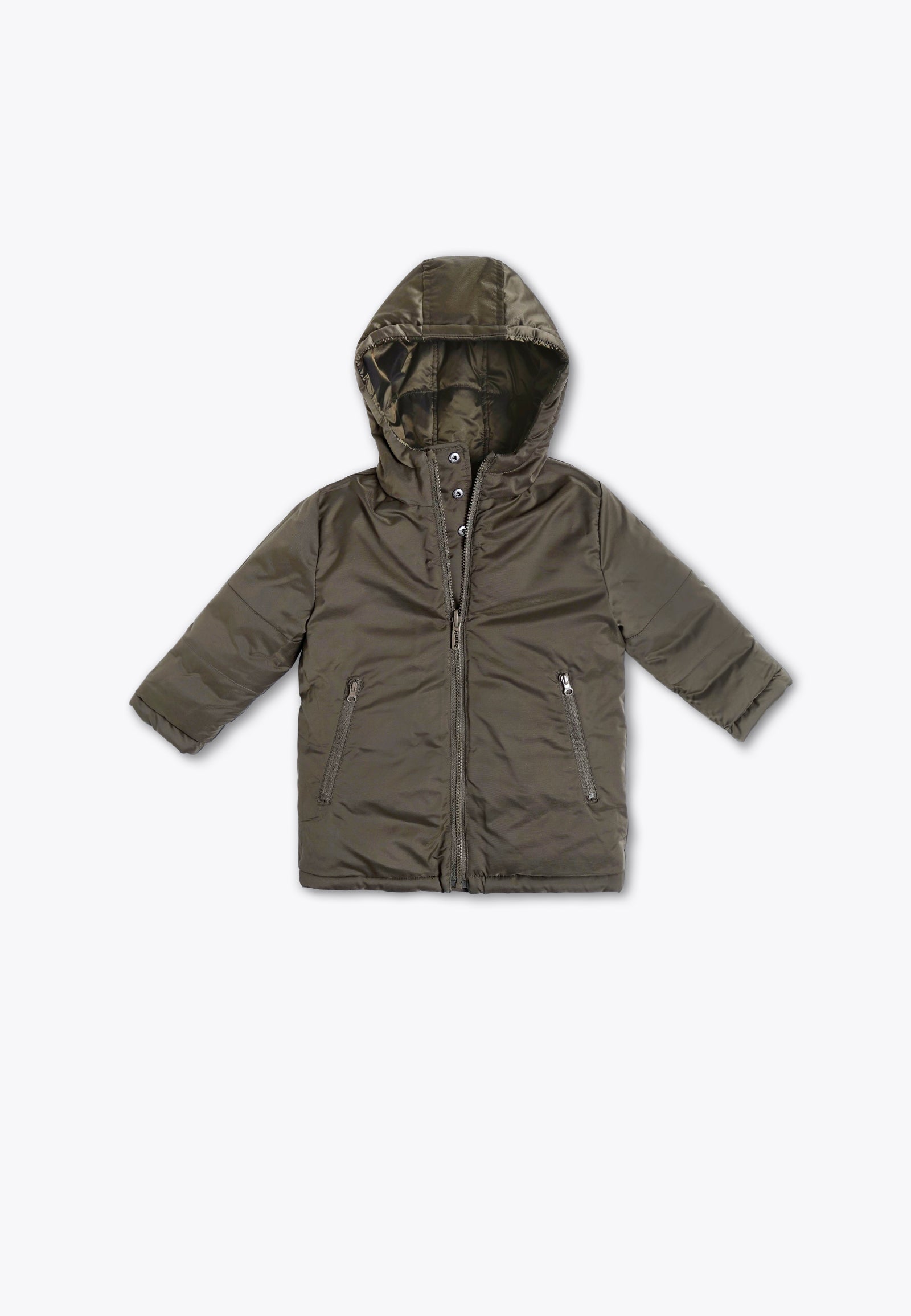 Giaccone reversibile con cappuccio. Una giacca alla moda che offre due look in uno, grazie al suo design con tessuto shiny da un lato e tessuto opaco dall'altro. Scegli l'aspetto che preferisci e crea outfit unici. Il cappuccio, realizzato con tessuto di alta qualità, offre una protezione aggiuntiva dalle intemperie, mantenendo la testa al caldo e asciutta durante le giornate più fredde. Disponibile in color fango.