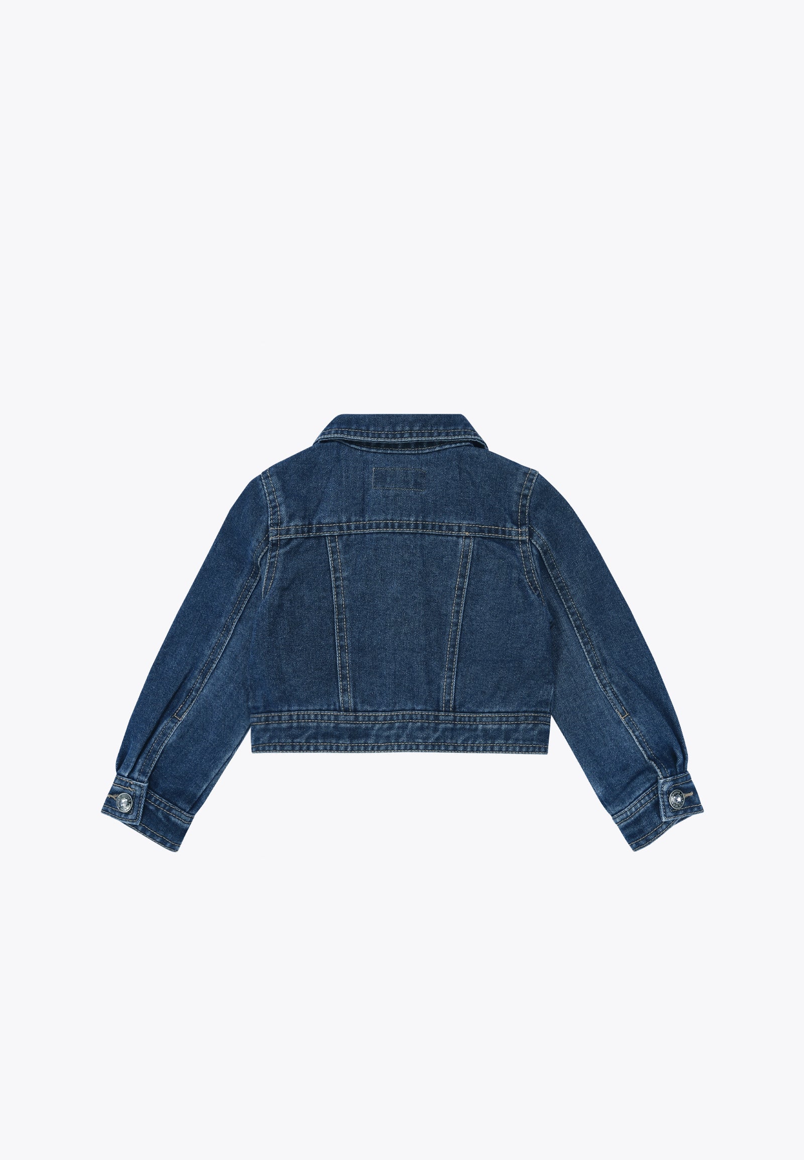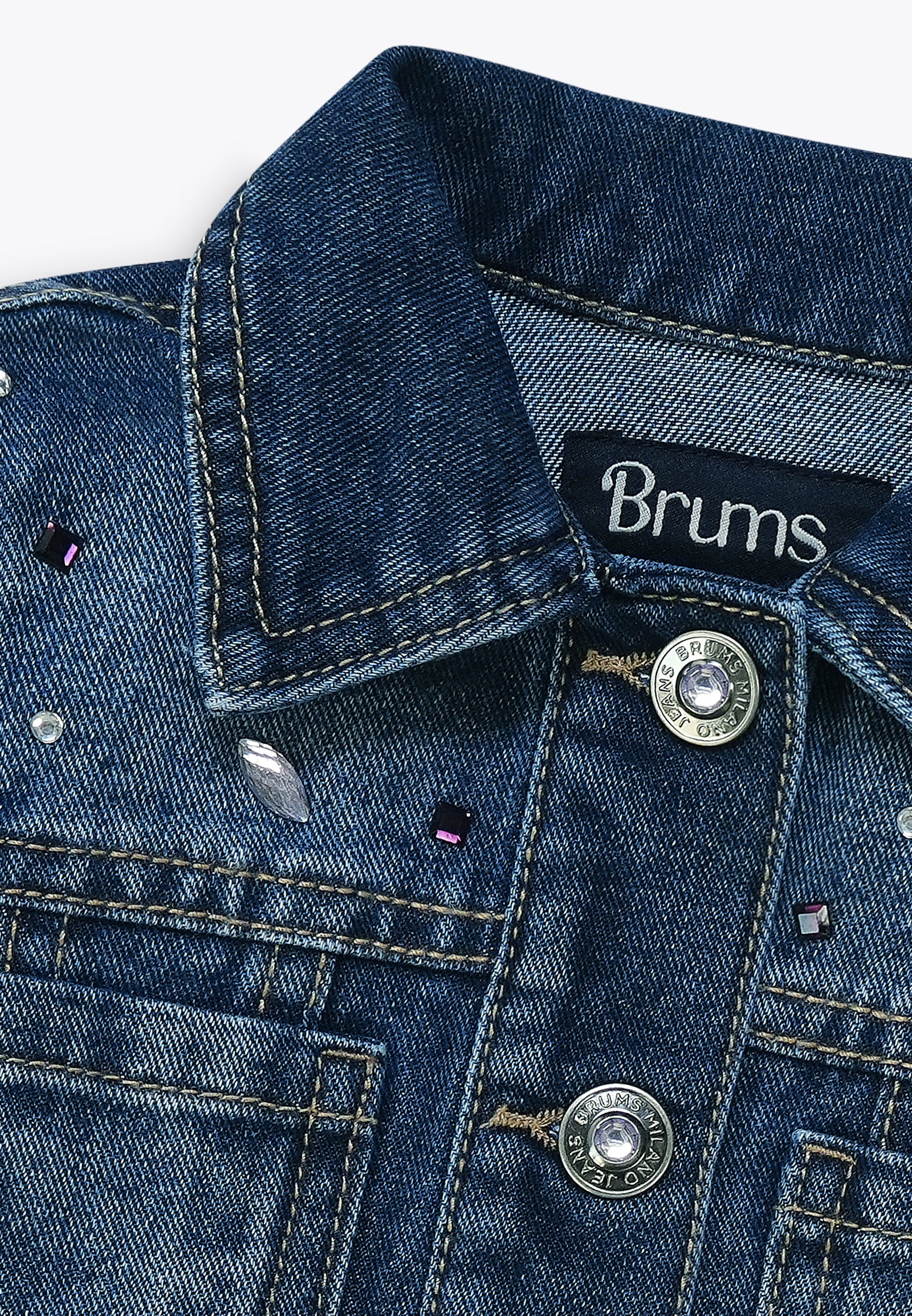 Giubbino in denim REPREVE©. Questo capo unisce comfort e originalità, creando un look irresistibile per la tua piccola. Il jeans offre morbidezza e flessibilità per garantire un comfort ottimale durante le attività quotidiane. Le applicazioni brillantate aggiungono un tocco di dolcezza e fantasia. Disponibile in color jeans stone wash.