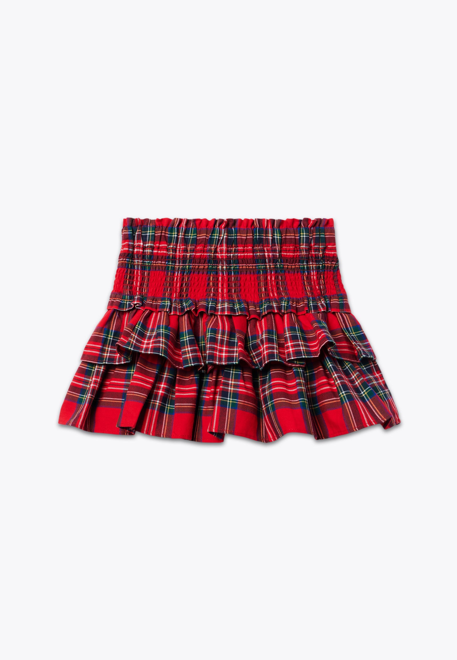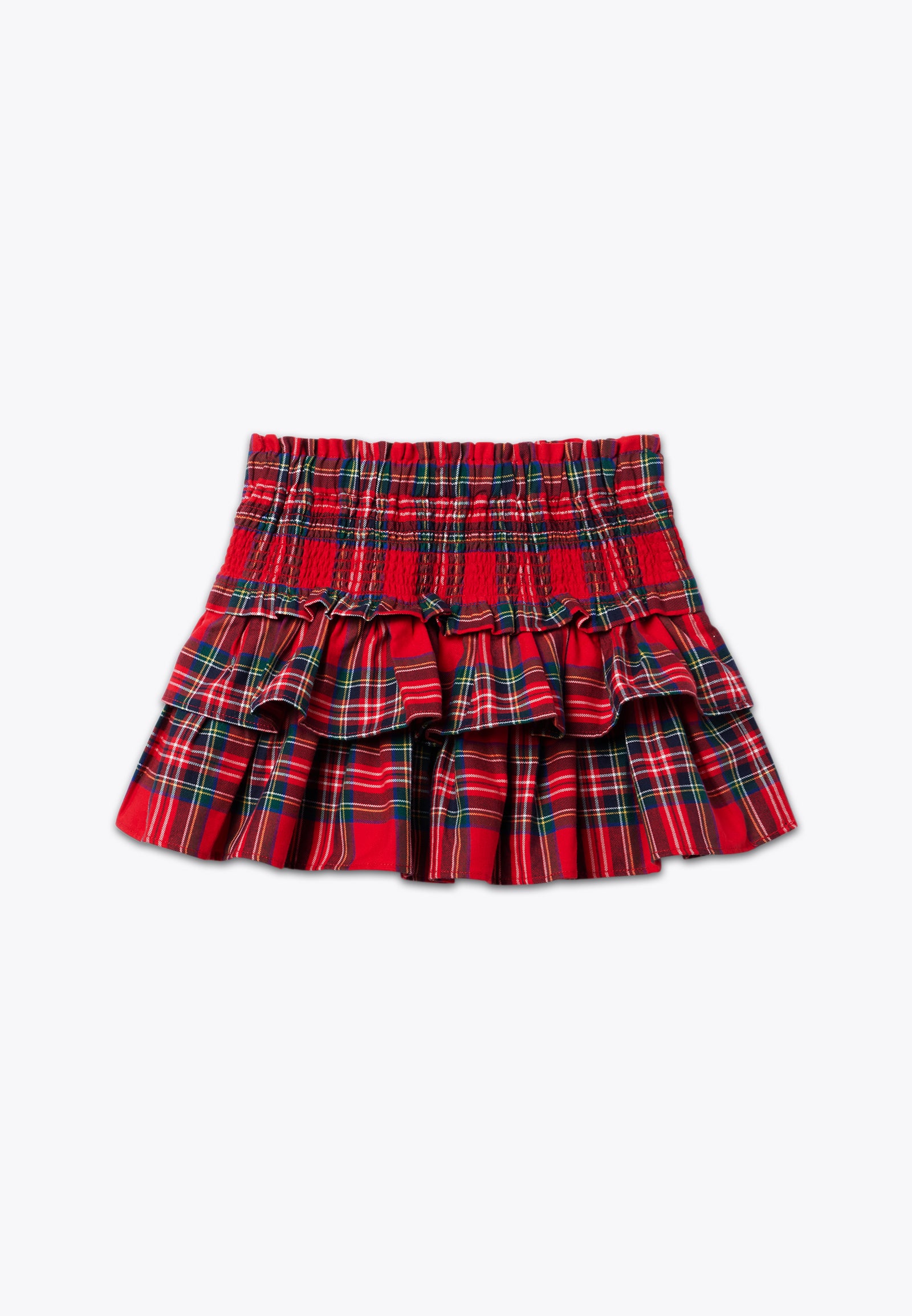 Gonna con fantasia scozzese. Un capo d'abbigliamento reso speciale grazie al disegno classico del motivo a quadri tartan: festosa, elegante e colorata, questa gonnellina è perfetta per essere indossata durante le feste natalizie, le cerimonie e le grandi occasioni. Disponibile in rosso e in verde con fantasia scozzese.