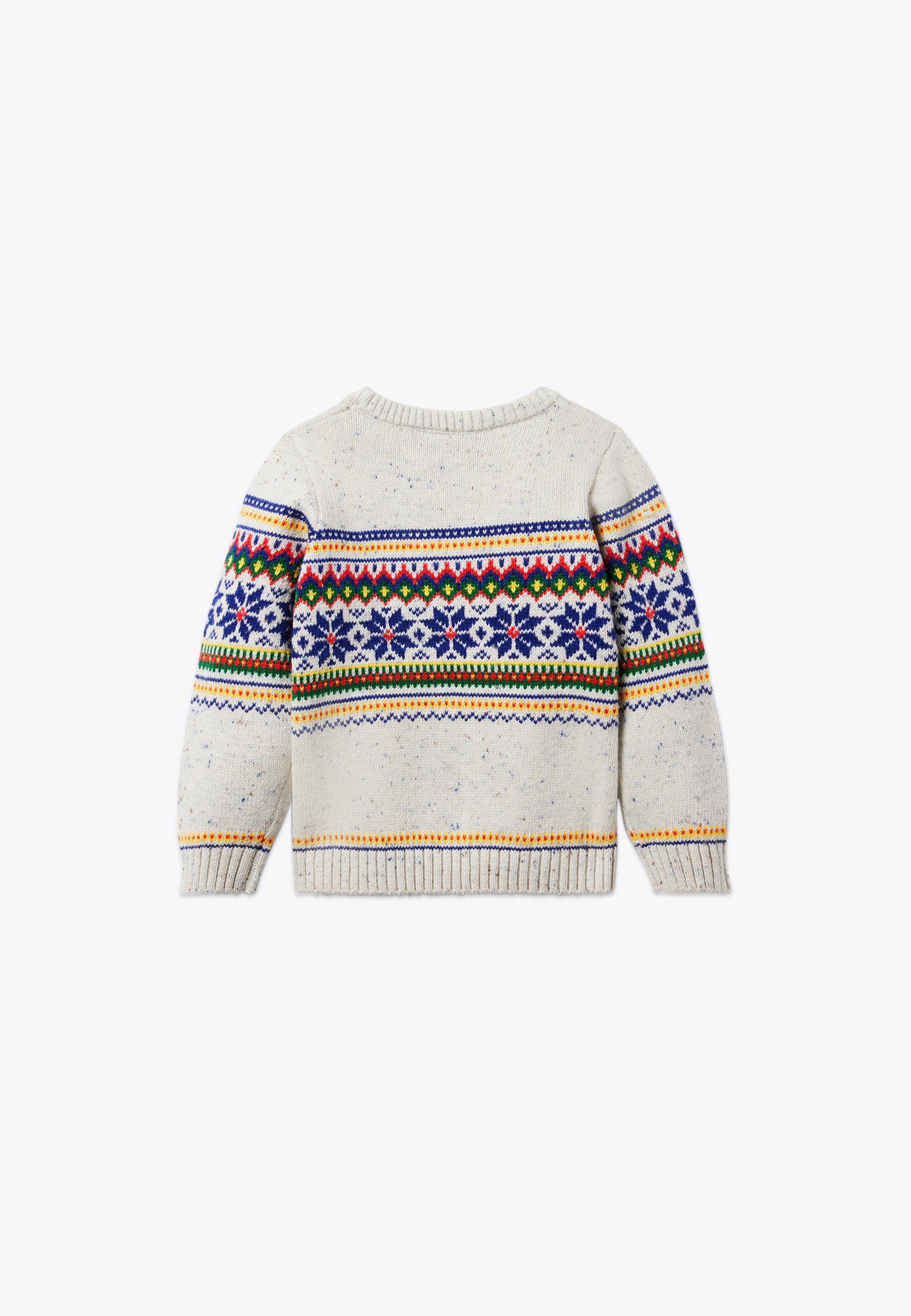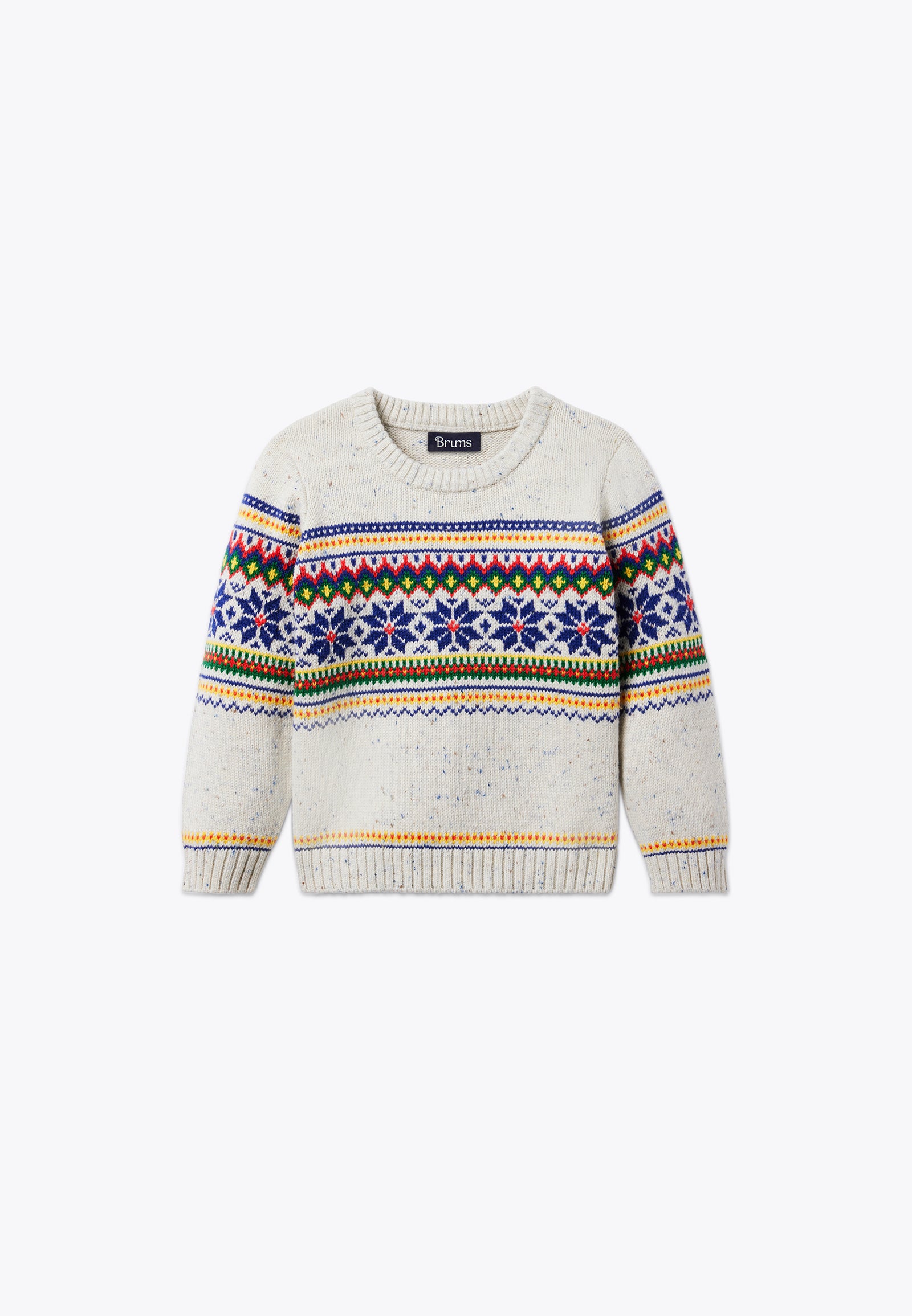 Maglione in tricot. Un simpatico top dal colore classico e dal ricamo natalizio per accompagnare il tuo bambino nelle occasioni importanti: perfetto per cerimonie ed eventi - così come per il Natale - donerà quel tocco di brio richiesto per brillare. Disponibile in off-white.