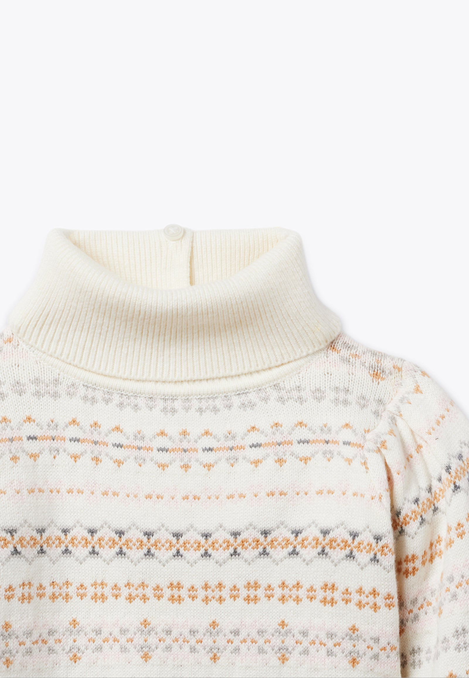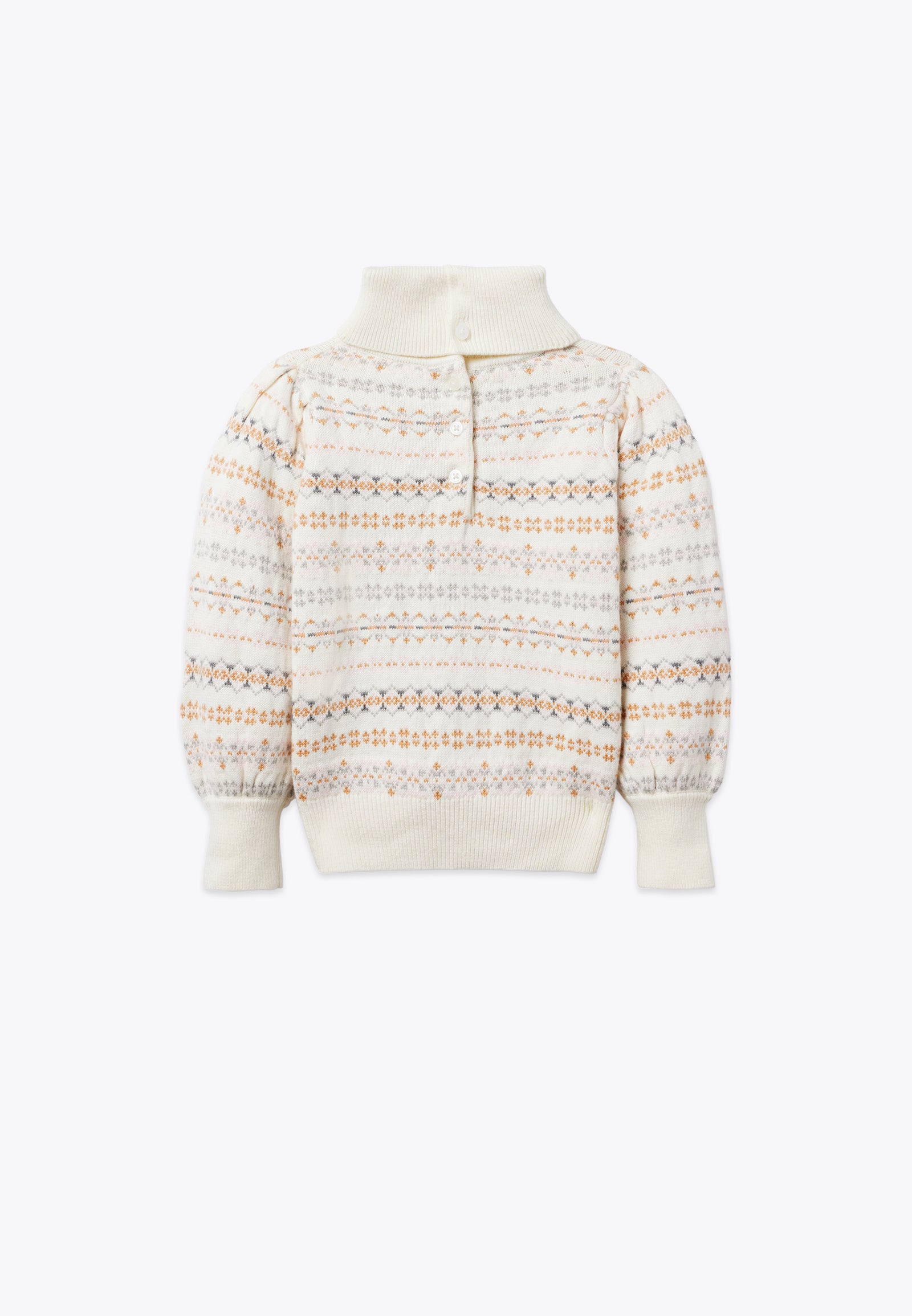 Maglione fantasia. Un capo d'abbigliamento reso speciale grazie al disegno senza tempo: classico ed elegante, questo top è perfetto per essere indossato durante le feste, le cerimonie e le grandi occasioni. Disponibile in panna con fantasia multicolor.