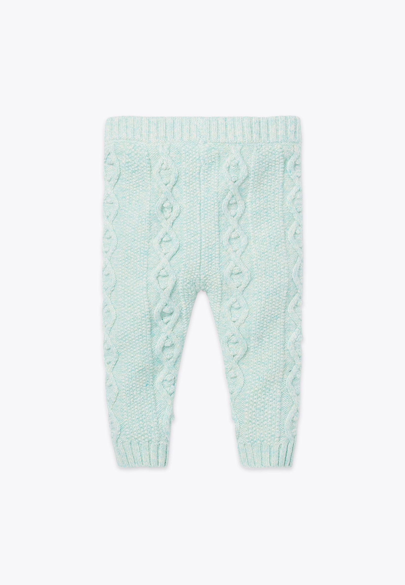 Pantalone con trama a trecce. Un capo d'abbigliamento da neonato delicato, comodo e perfetto da indossare con qualsiasi outfit: abbinalo a un cardigan, un maglioncino o una felpina per creare look casual dalla morbidezza unica. Disponibile in verde acqua, in rosa e in azzurro carta da zucchero.