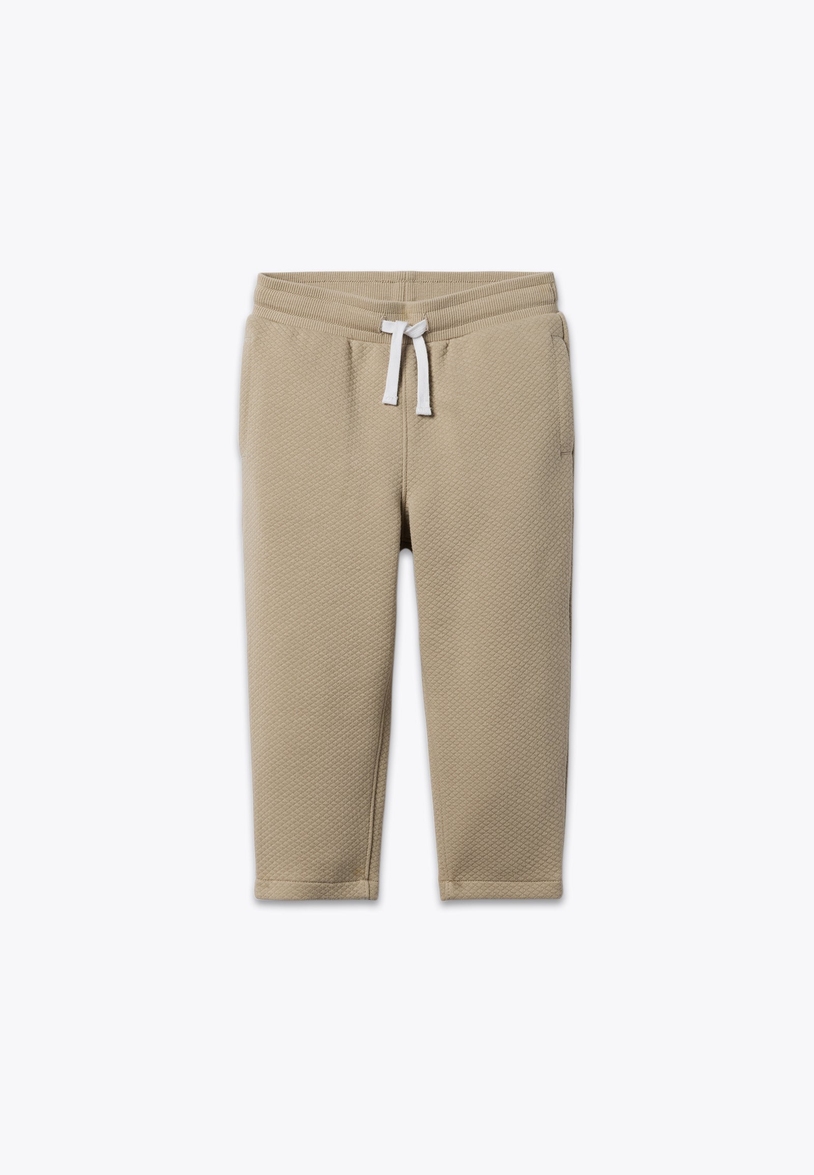 Pantalone con coulisse. Un pantalone lungo comodo e versatile, ideale per vestire il tuo bambino con un look urban. Dalle bellissima tonalità e dalla morbidezza unica, è il capo d'abbigliamento per completare un outfit casual e sportivo. Disponibile in beige.