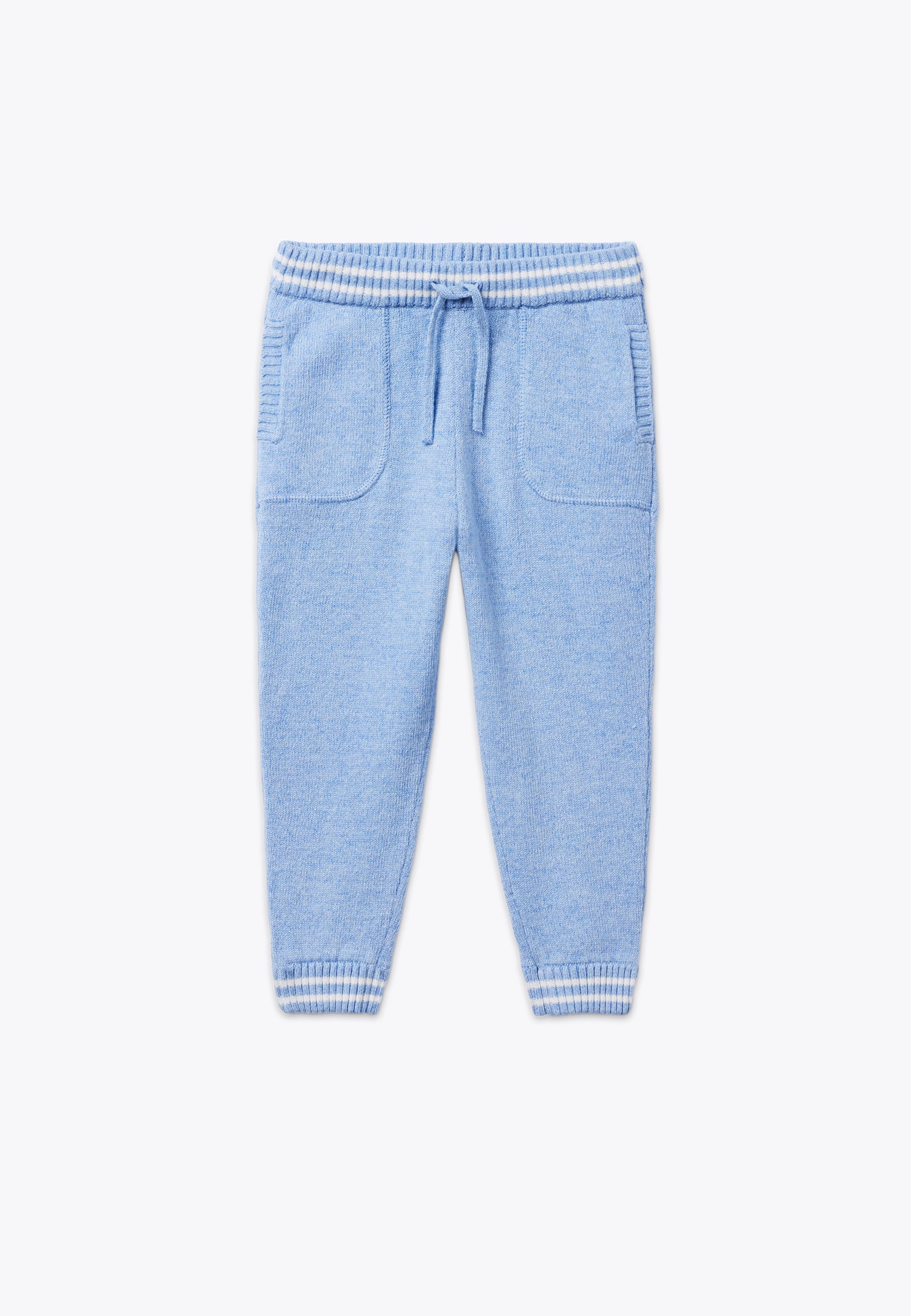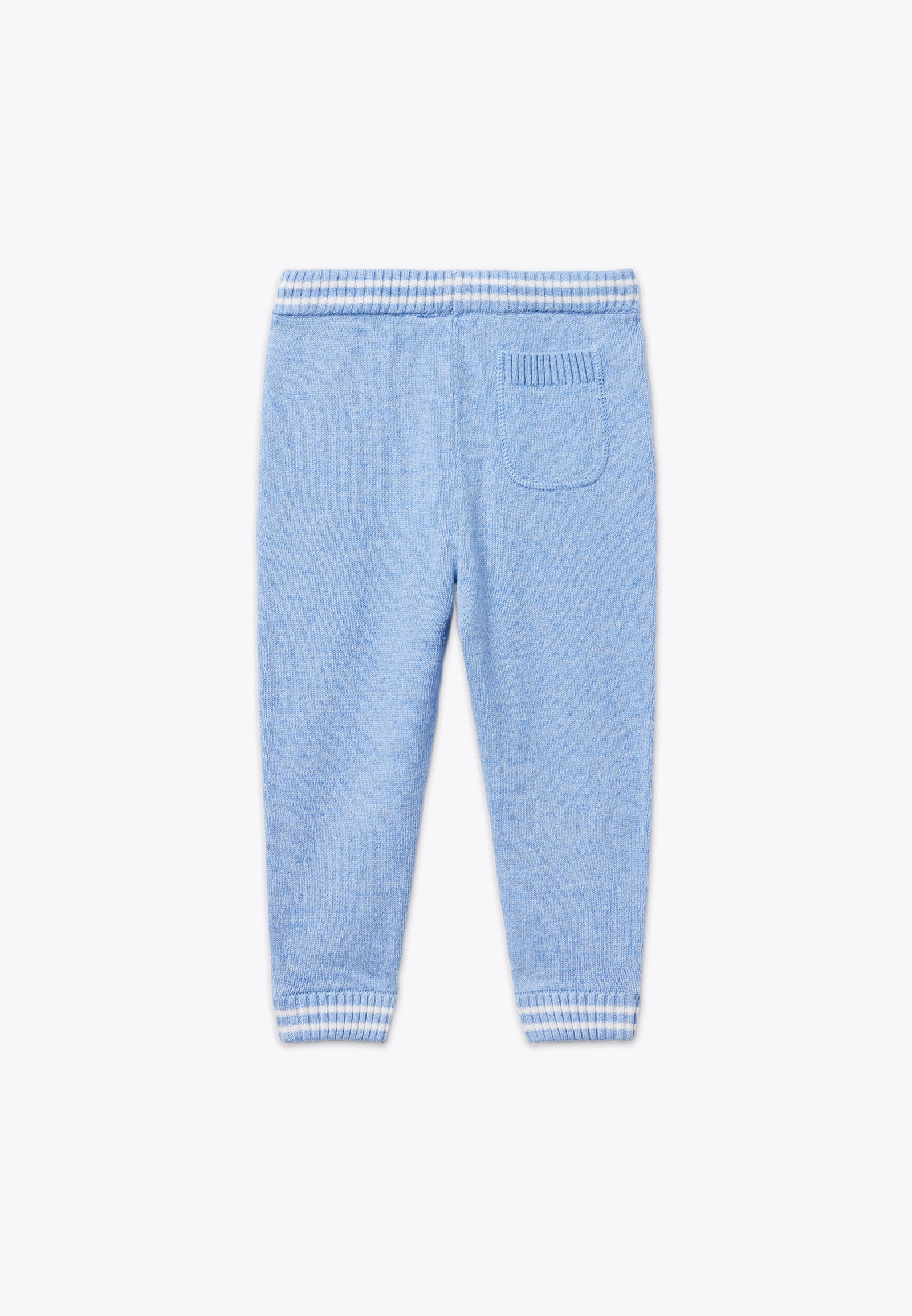 Pantalone con coulisse. Un pantalone lungo comodo e versatile, ideale per vestire il tuo bambino con un look classico. Dalle bellissima tonalità e dalla morbidezza unica, è il capo d'abbigliamento per completare un outfit casual e sportivo. Disponibile in azzurro con dettaglio bianco.