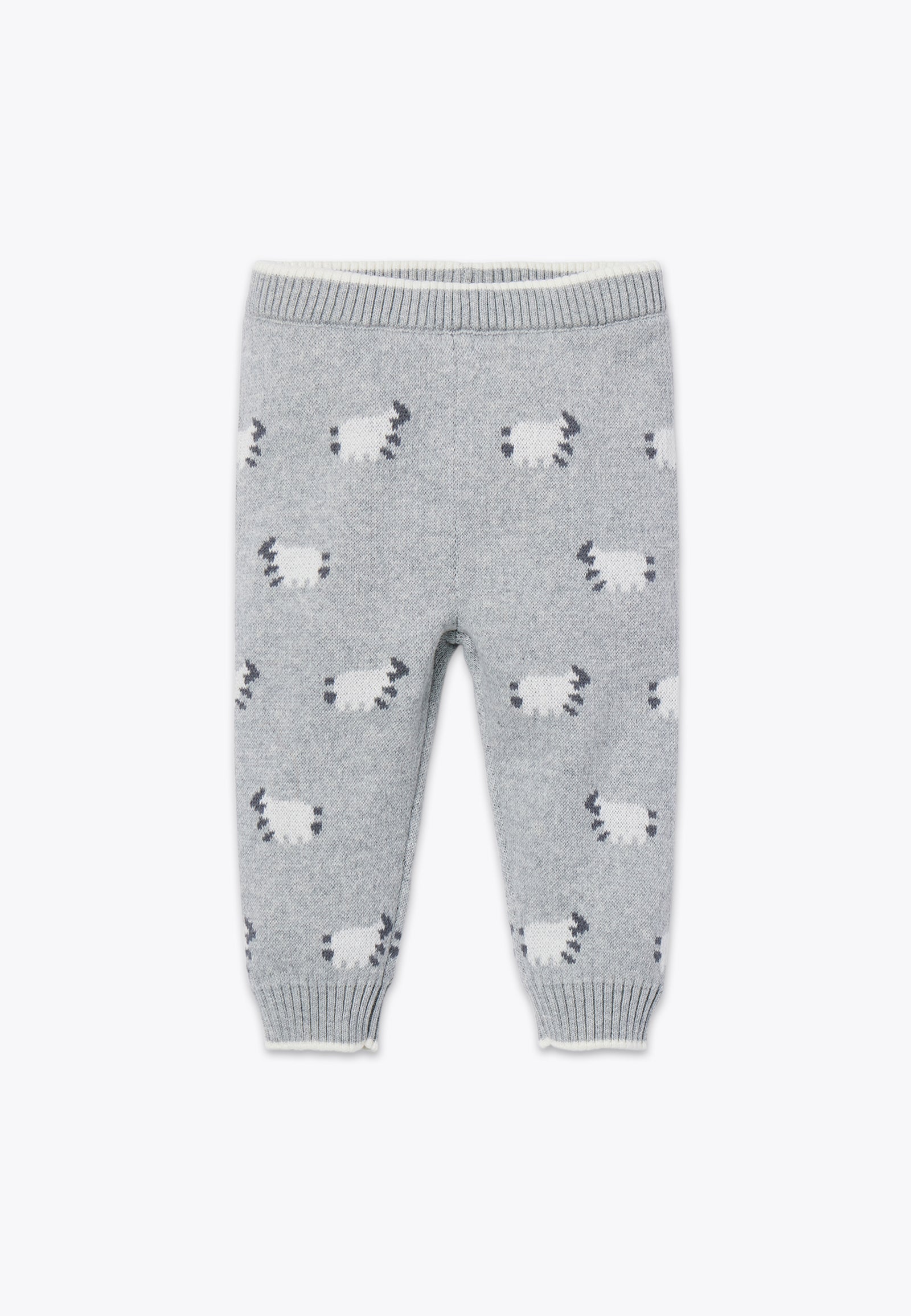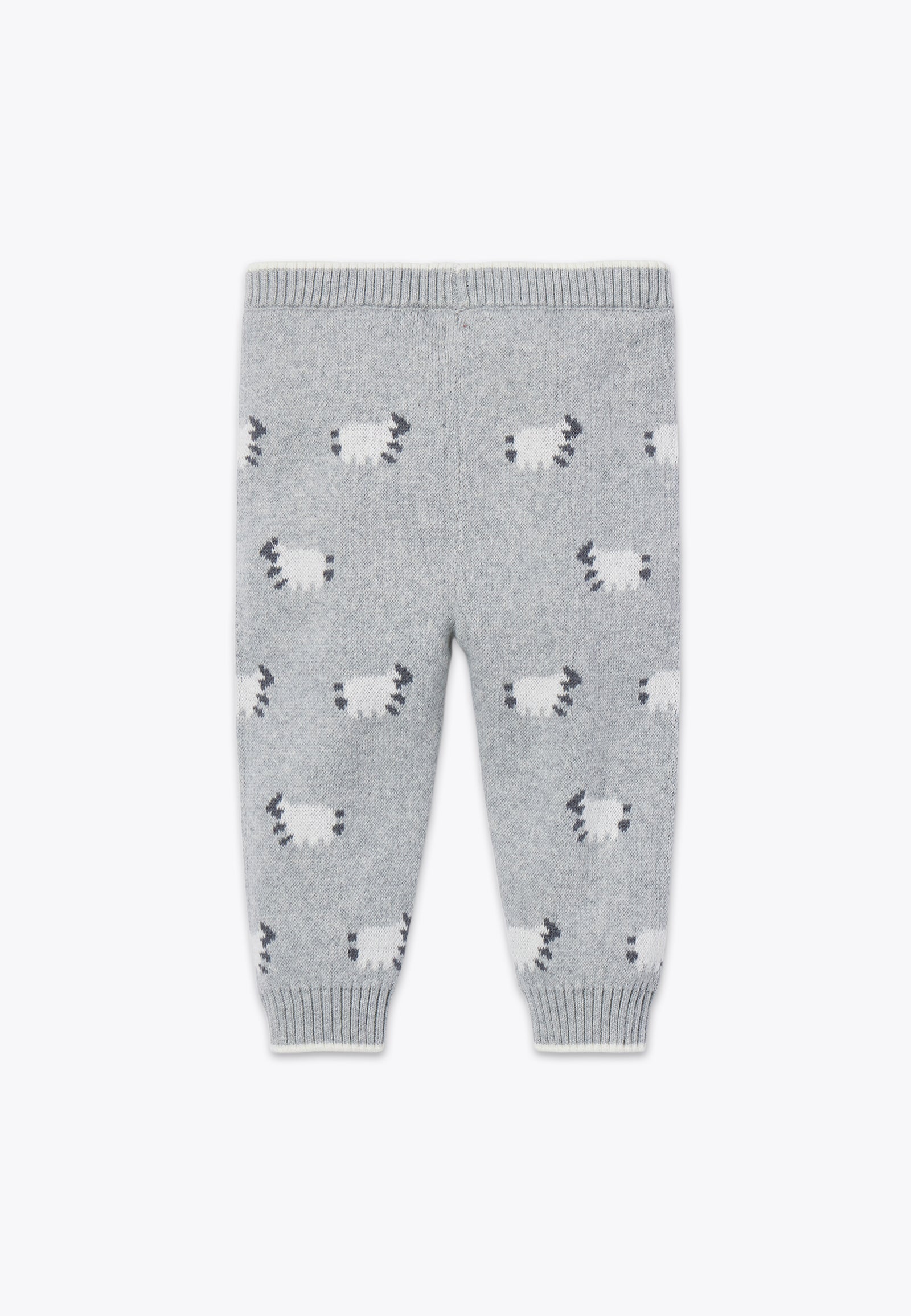Pantalone con fantasia a pecorelle. Un capo d'abbigliamento da neonato delicato, comodo e perfetto da indossare con qualsiasi outfit: abbinalo a un cardigan, un maglioncino o una felpina per creare look casual dalla morbidezza unica. Disponibile in grigio con disegno a pecorelle.