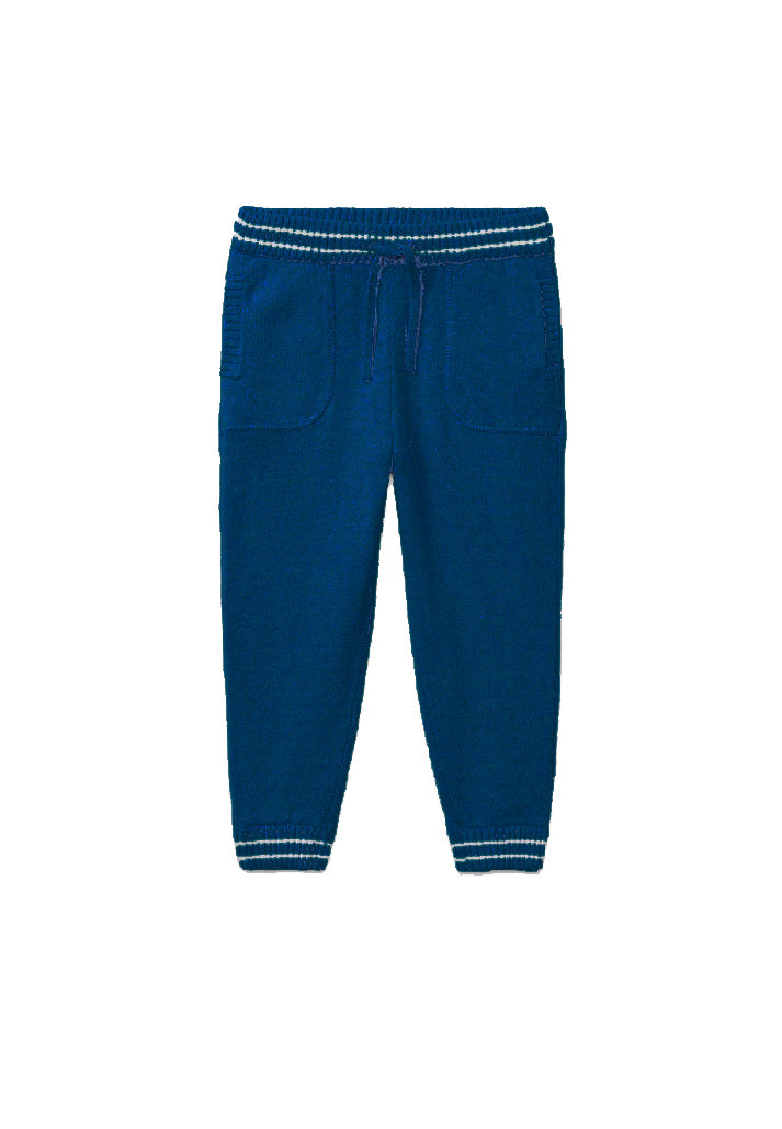 Pantalone con coulisse. Un pantalone lungo comodo e versatile, ideale per vestire il tuo bambino con un look classico. Dalle bellissima tonalità e dalla morbidezza unica, è il capo d'abbigliamento per completare un outfit casual e sportivo. Disponibile in blu notte con dettaglio bianco.