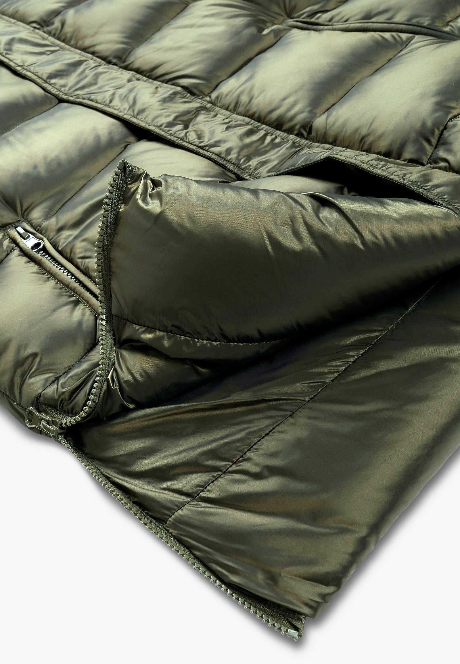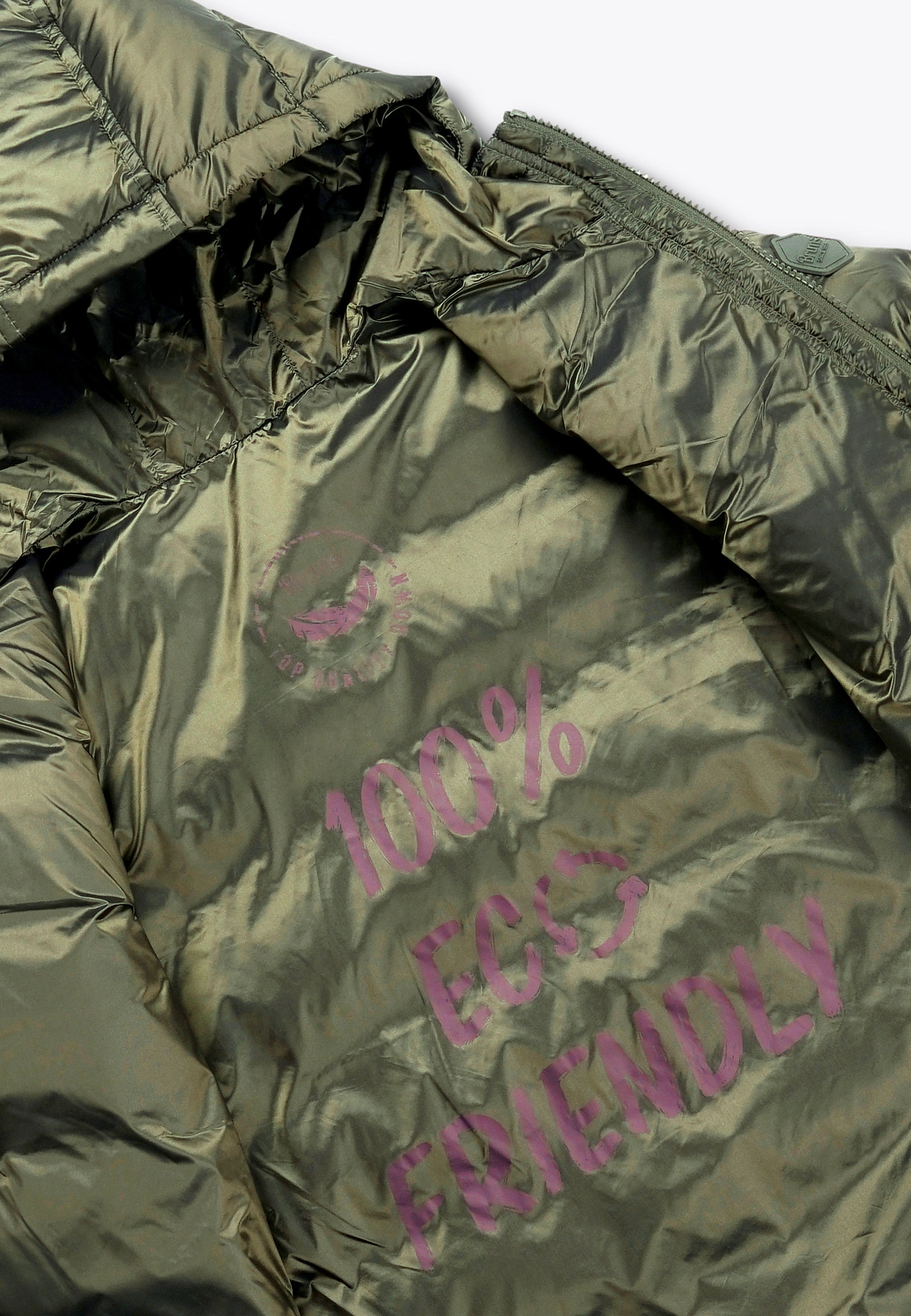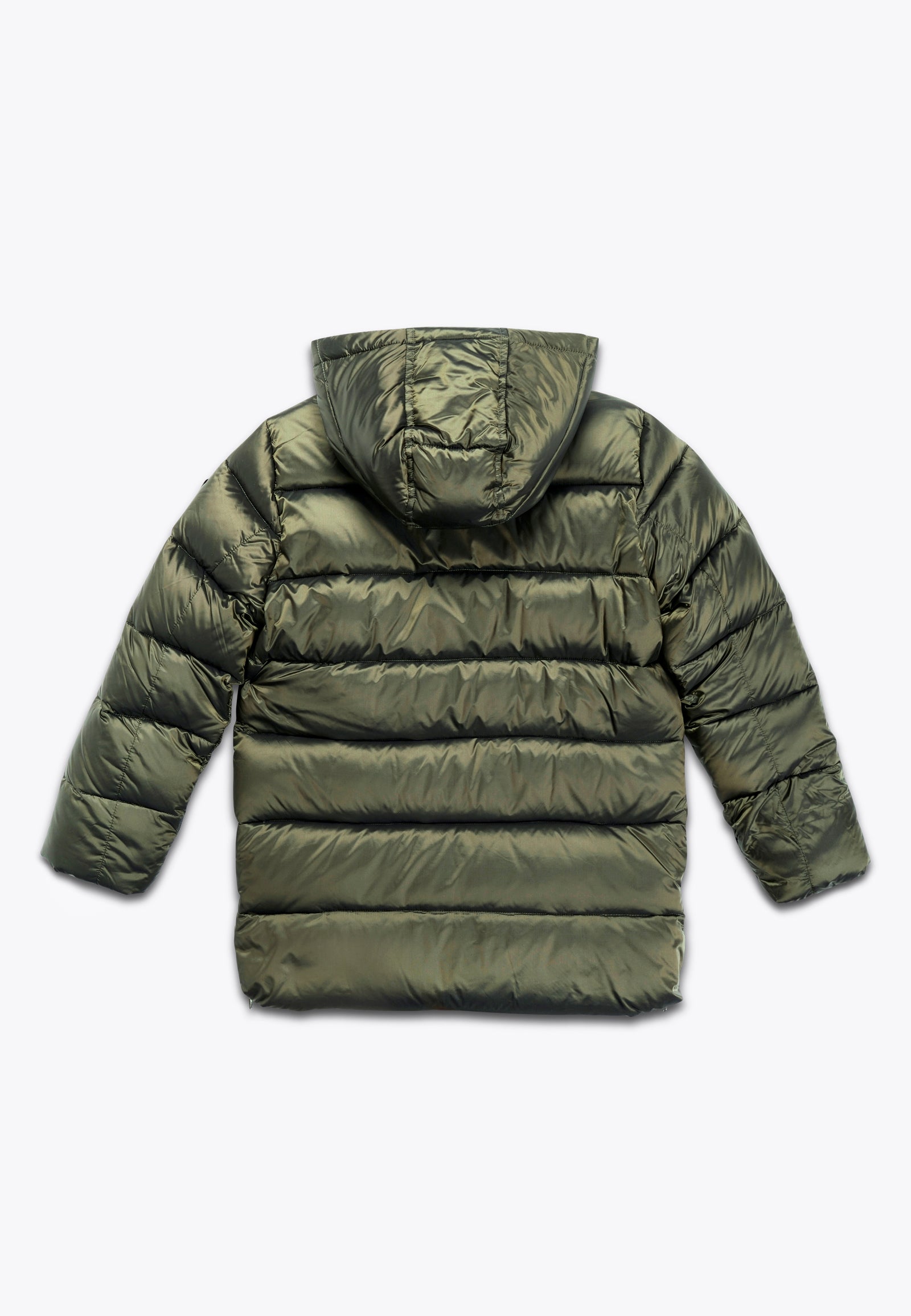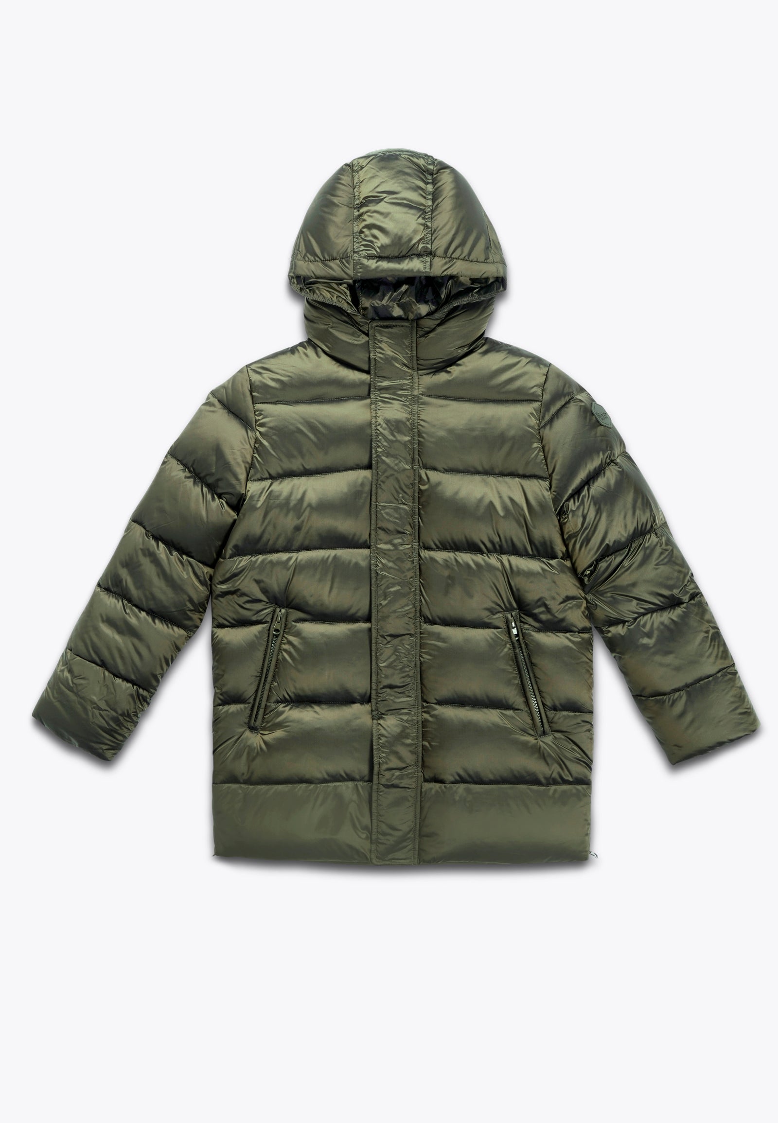 Piumino lungo in piuma d'anatra. Il giubbotto Brums Milano è il capo di tendenza perfetto per il tuo bambino: presenta un taglio versatile offrendo una vestibilità elegante, il cappuccio protegge dal freddo della stagione autunno-inverno e l'effetto lucido dona al piumino un tocco di stile unico. Realizzato al 100% in materiale eco-friendly, il nostro giubbino in piuma d'anatra è una scelta sostenibile e rispettosa dell'ambiente che garantisce un calore naturale e leggero, senza appesantire il capo. Disponibile in verde militare.