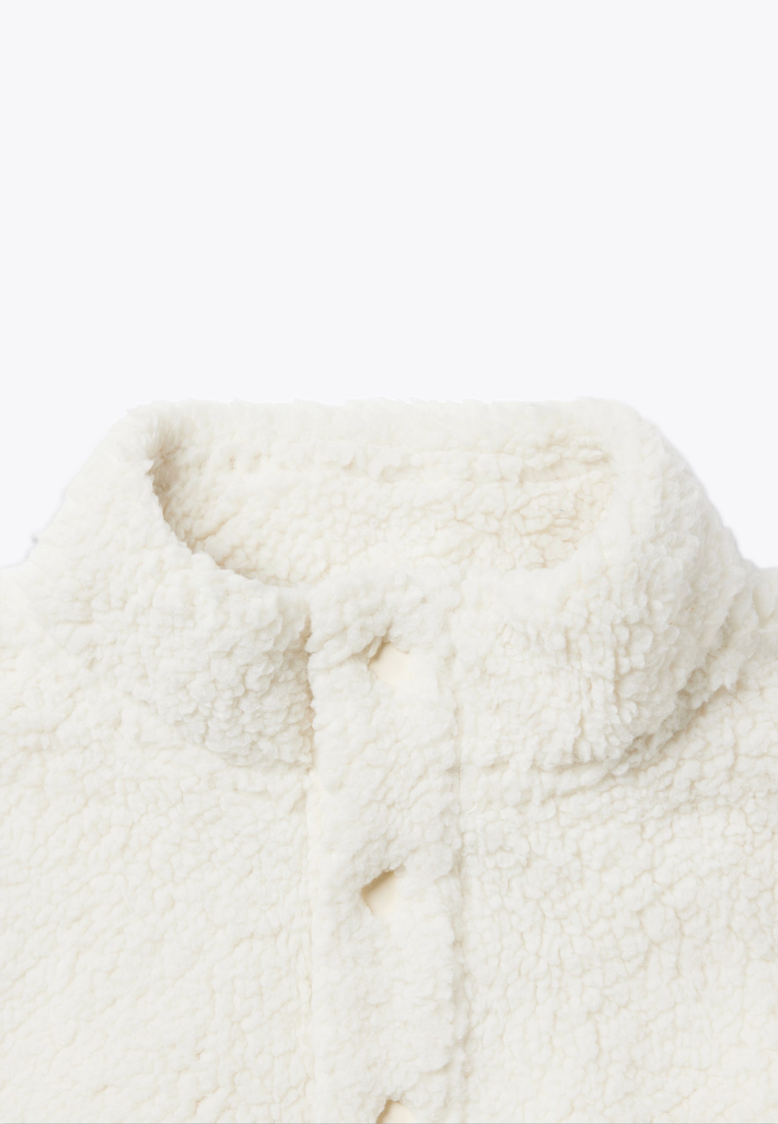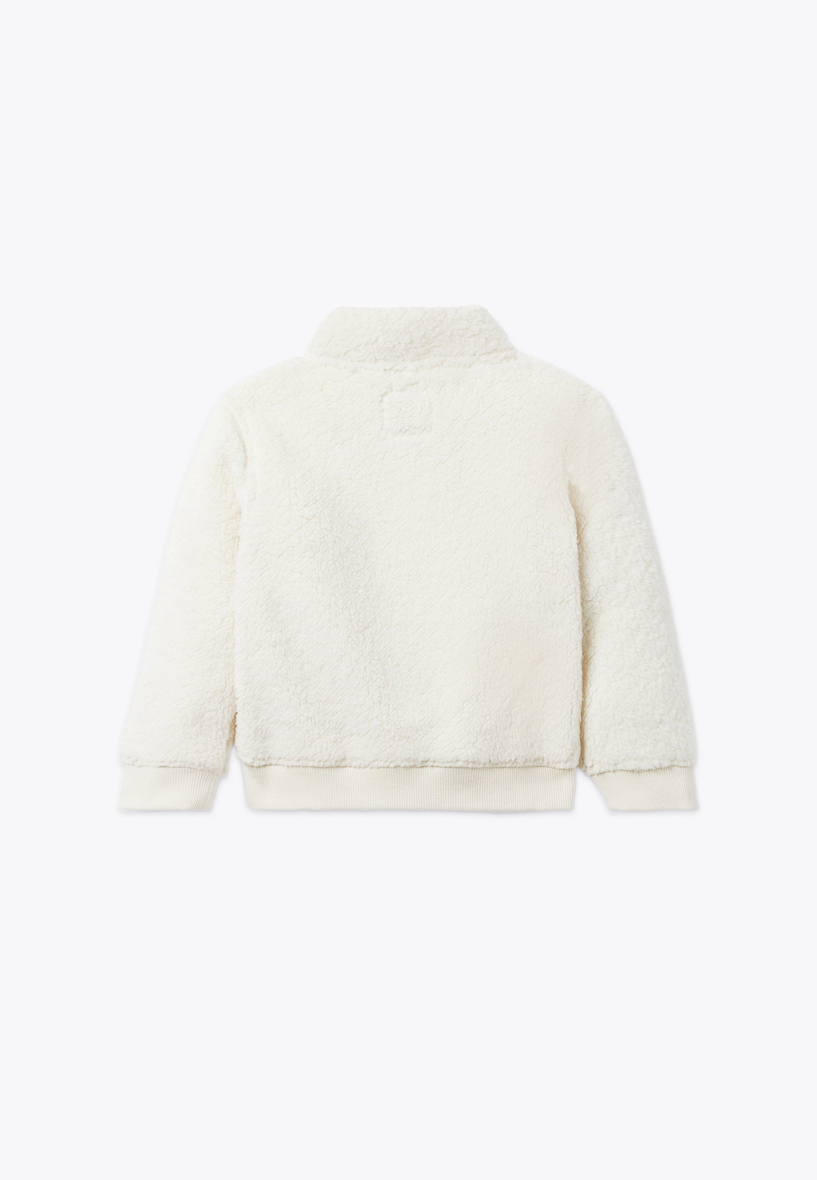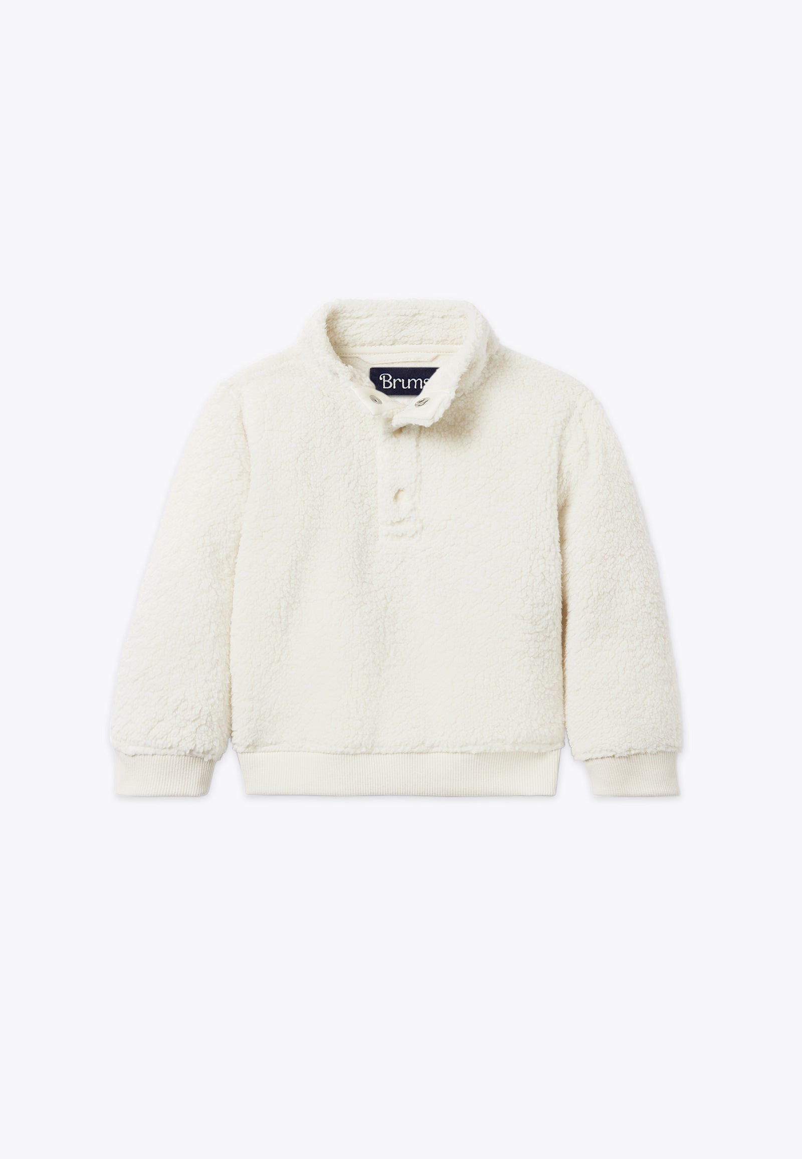 Pullover in pile. Un top perfetto per la stagione invernale che non potrà mancare nell'armadio del tuo bambino. Una texture soffice e un colore classico rendono questo pullover l'alleato perfetto per la stagione invernale per outfit causal e sofisticati. Disponibile in crema e in blu notte.