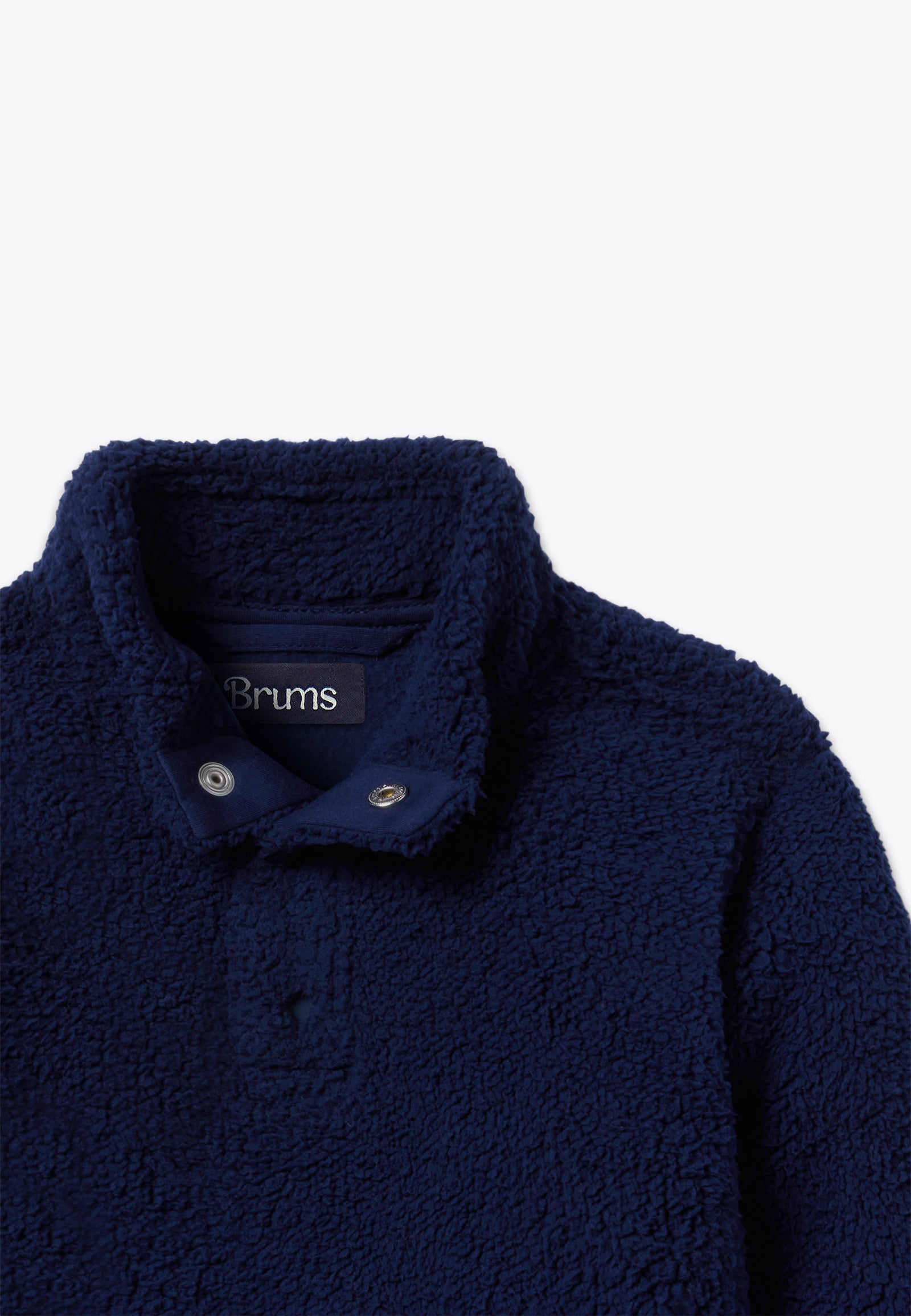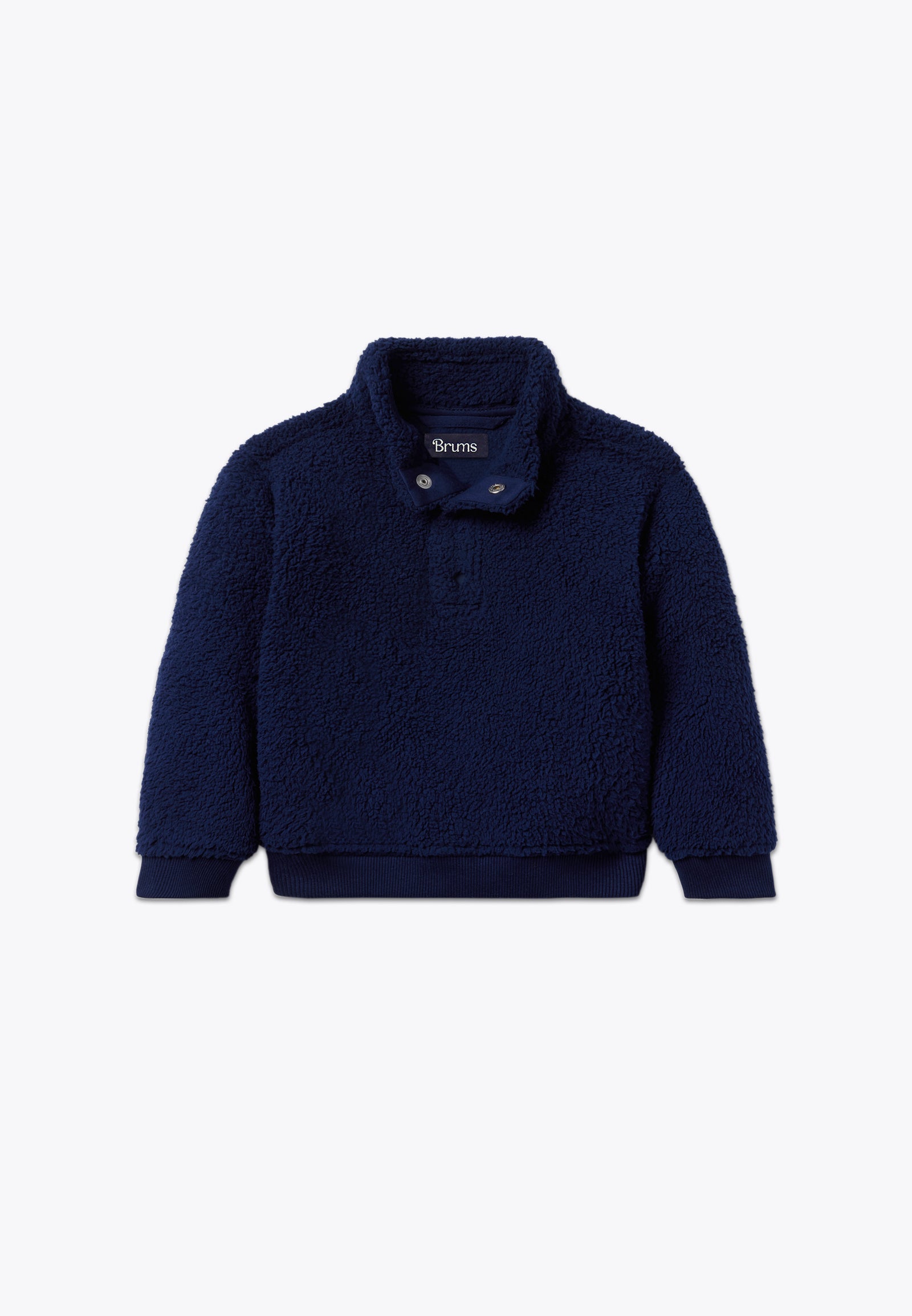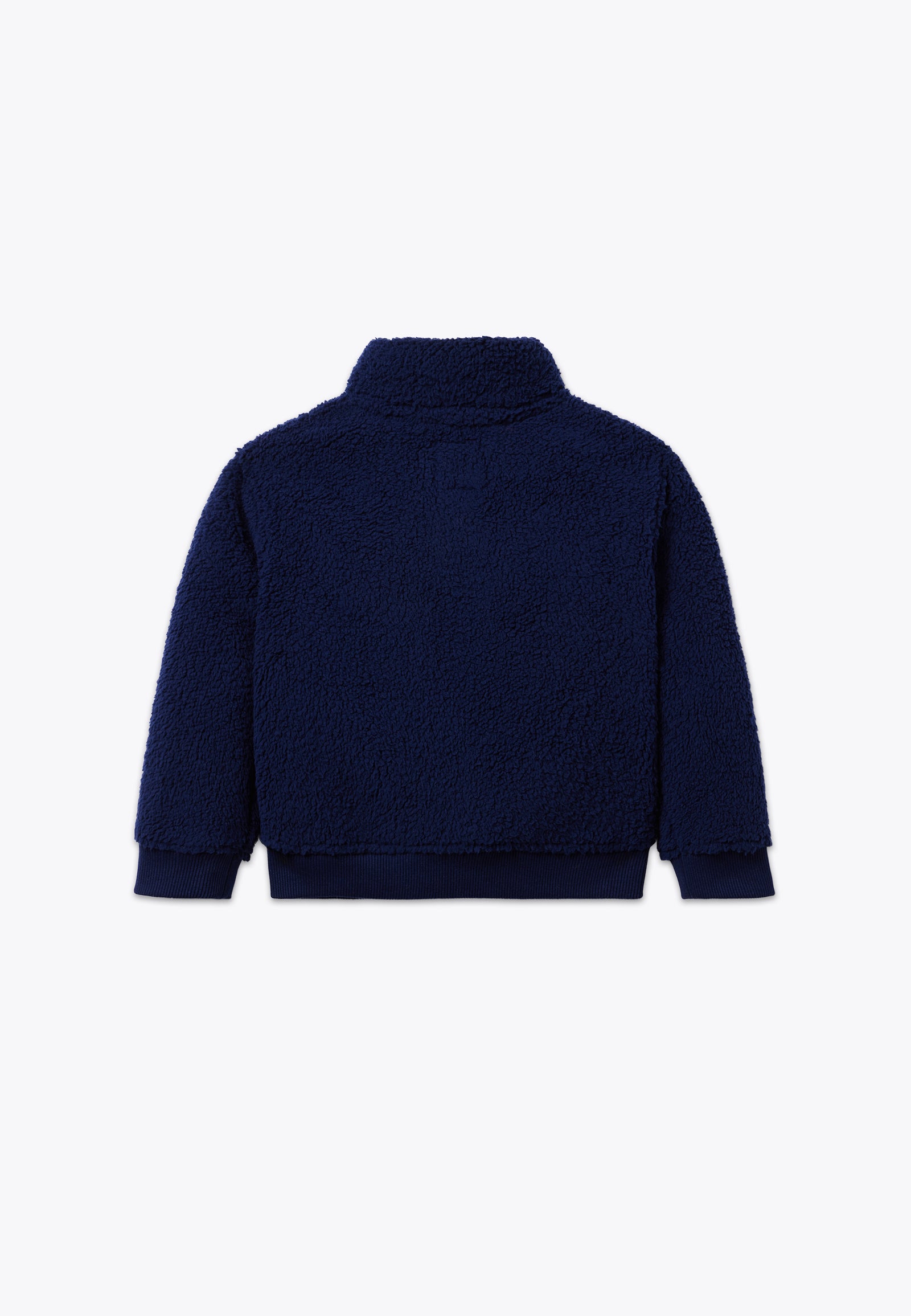 Pullover in pile. Un top perfetto per la stagione invernale che non potrà mancare nell'armadio del tuo bambino. Una texture soffice e un colore classico rendono questo pullover l'alleato perfetto per la stagione invernale per outfit causal e sofisticati. Disponibile in crema e in blu notte.