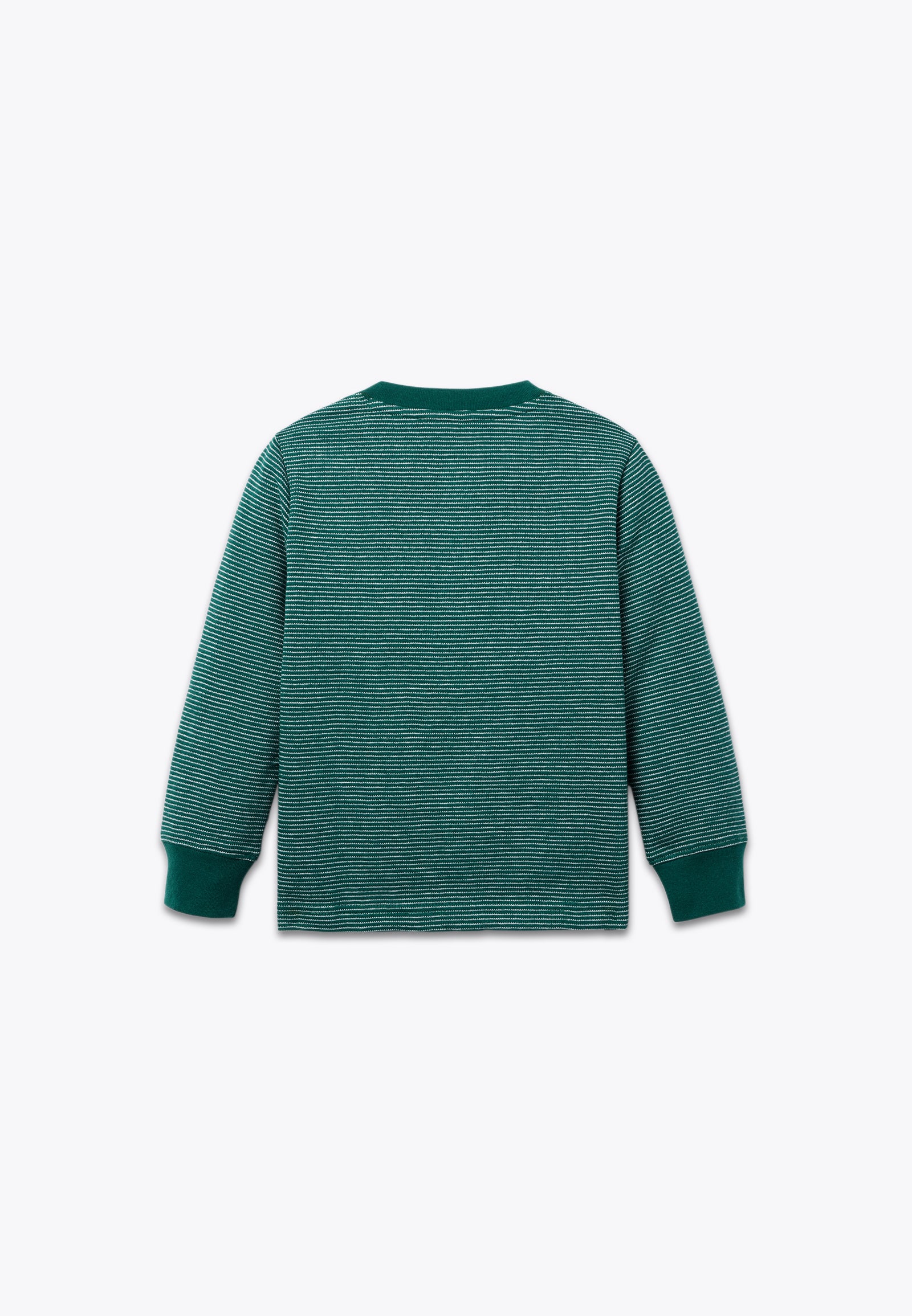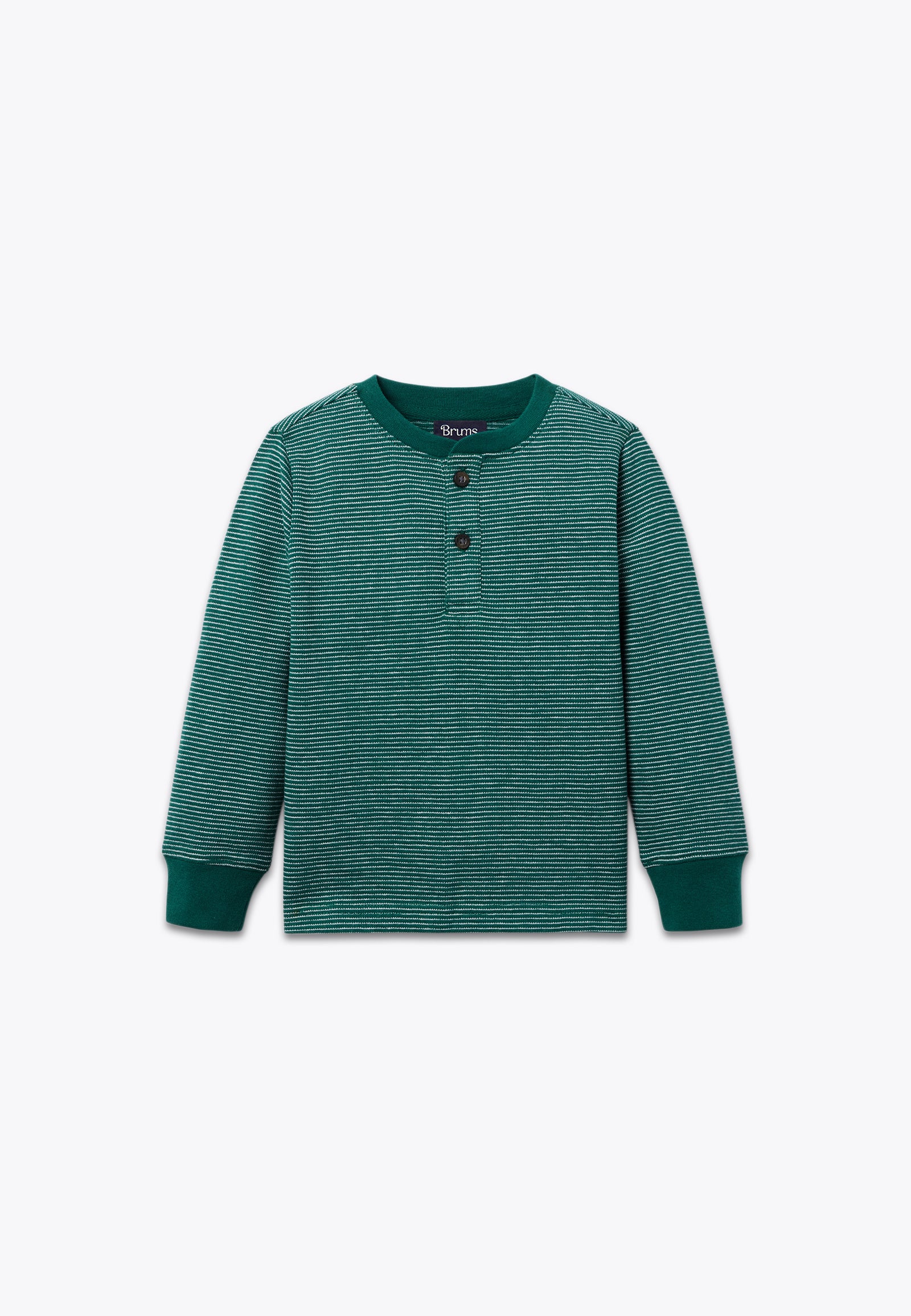 Serafino in jacquard. Una t-shirt serafino a manica lunga da indossare tutti i giorni e adatta a ogni tipo di outfit, impreziosita dal jacquard e dal colore particolare. Disponibile in verde bosco e blu notte.